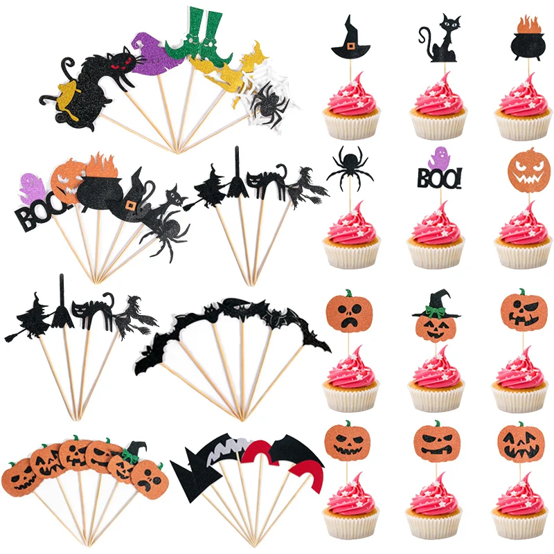 Gyufise 36 Stück Happy Halloween Cupcake Topper Mit Kürbis Geist Hexe