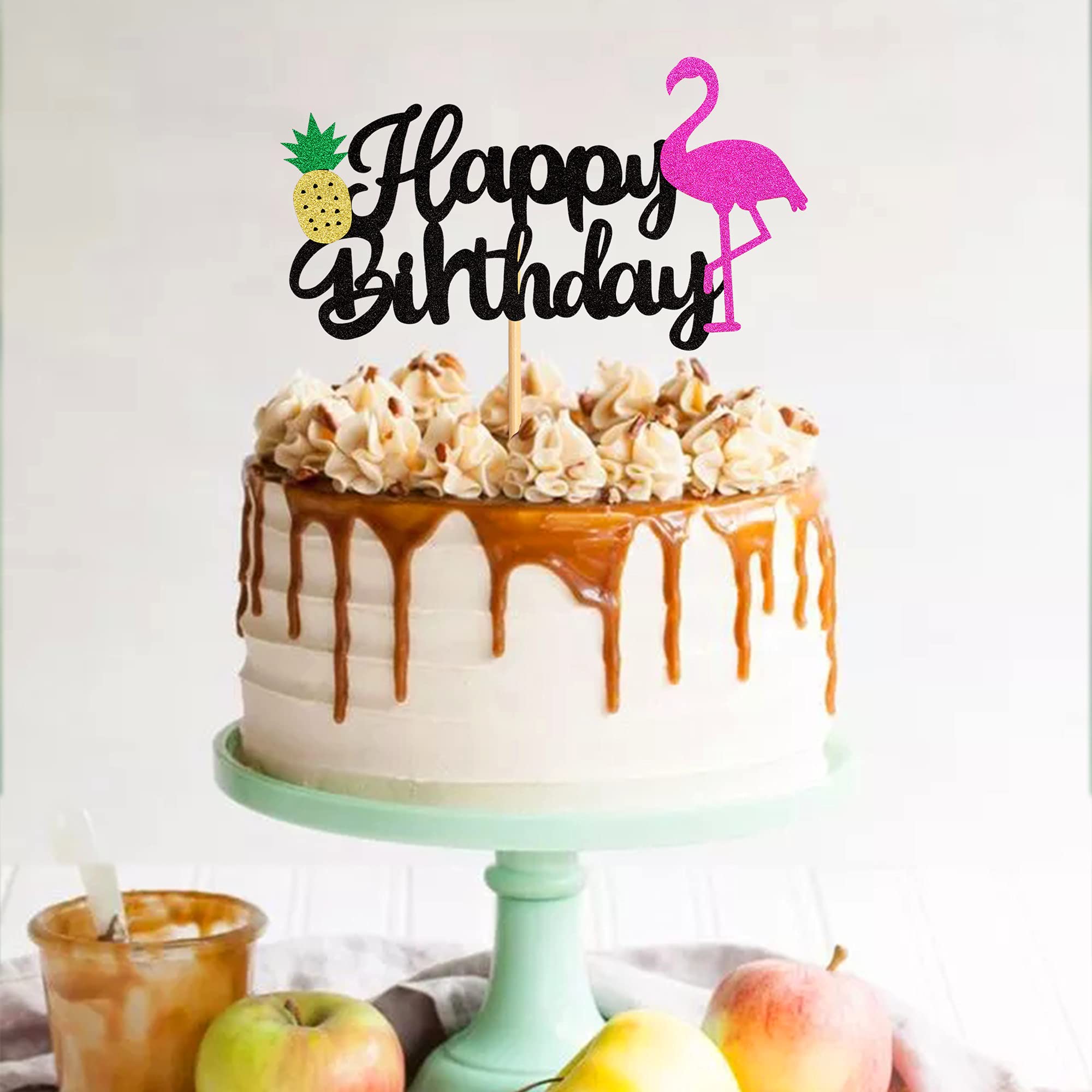 Gyufise Kuchendekoration "Happy Birthday", Tropisch, Hawaiianisch, Luau, Glitzer, Flamingo, Blume, Plam, Blätter, Ananas, Kuchendekoration Für Sommer, Babyparty, Geburtstagsparty, 1 Stück