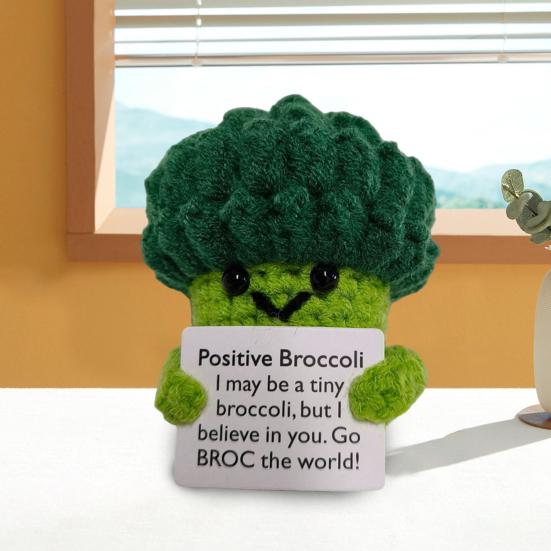 Positive Puppe Emotional Positive Brokkoli Häkelpuppe – Mit Glücksbringer- Karte, 9,5 Cm, Emotional Support Gemüse Emotionale Unterstützung Spielzeug
