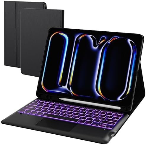 Hülle Mit Tastatur Für IPad Pro 2024 13 Zoll (QWERTZ Deutsches), Slim Schutzhülle Mit Pencil Halter, Wireless Abnehmbare Tastatur Für M4 (Schwarz