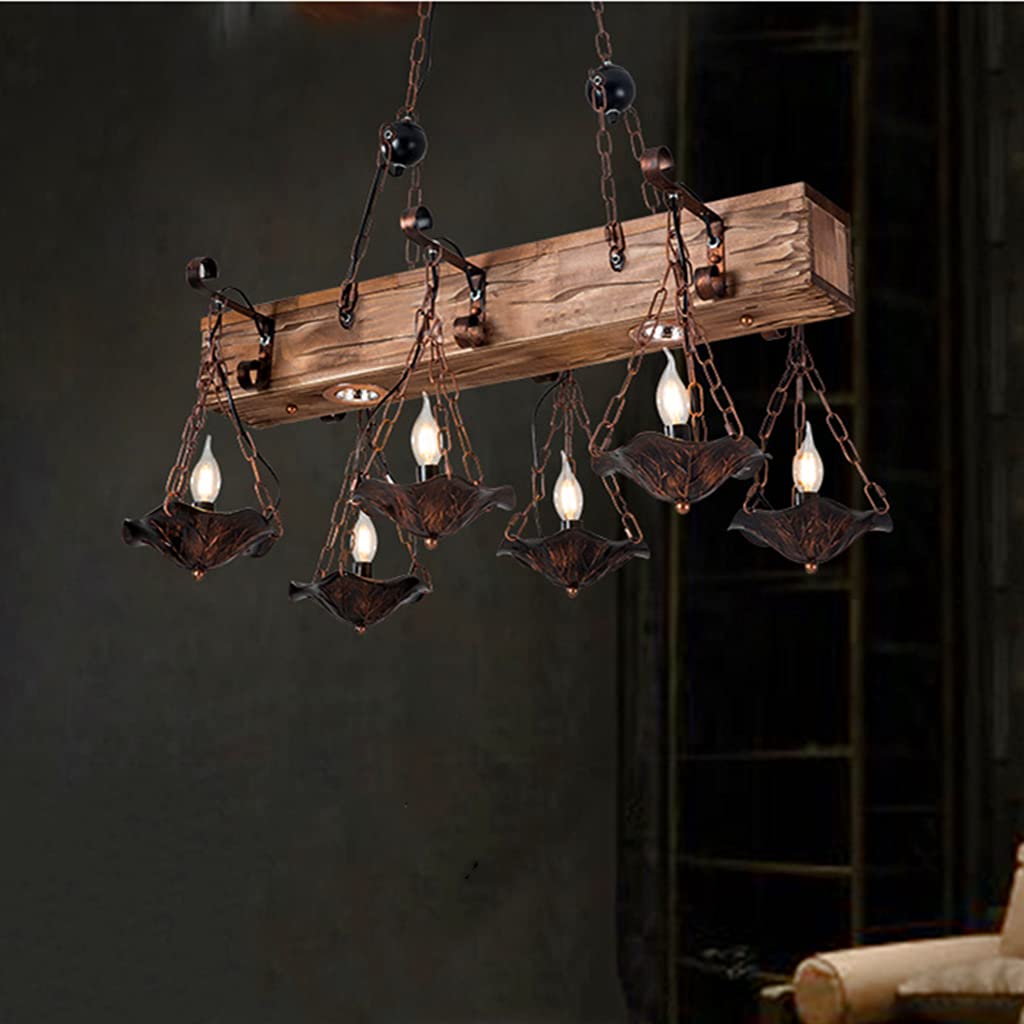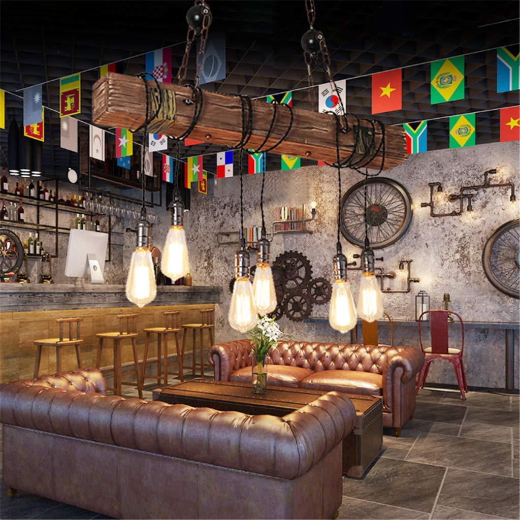 Vintage Hängeleuchte E27 Holz Industrial Pendelleuchte 6 Heads