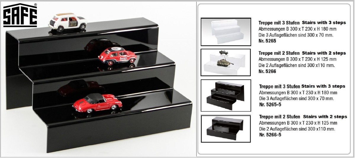 Präsentations-Treppen Acryl Eisenbahnen H0 3 Stufen B300xT230xH180mm SAFE 5265-5