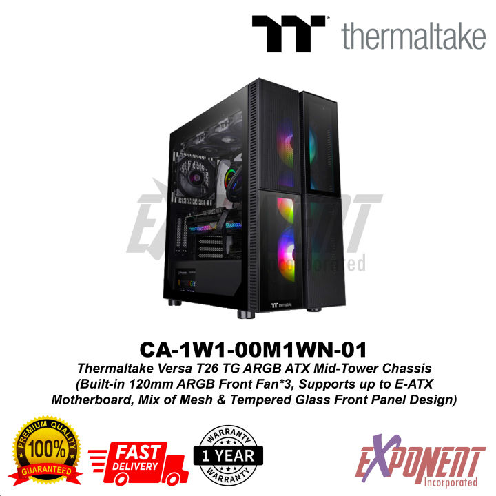 Für die Radiator-Kompatibilität kann es bis zu 360mm oder 280mm an der Front und Oberseite unterstützen. Die vier kleinen rechteckigen Panels sind mit zwei Mesh- und Hartglas-Panels kombiniert. Darüber hinaus können Sie dank des vergrößerten Fensters all Ihre Komponenten in ihrer vollen RGB-Beleuchtung präsentieren. Um die Unternehmensmission, ein perfektes Benutzererlebnis zu bieten, weiterhin zu erfüllen, hat Thermaltake TT Premium entwickelt, Um Produkte mit höchsten Qualitätsansprüchen unter einem Logo zu vereinen. TS140 EX RGB PC Cooling Fan (3-Fan Pack) TS EX RGB ist die erste Lüfter-Serie von Thermaltake, die mit einem integrierten Temperatursensor au... Zu den weiteren herausragenden Merkmalen gehören ein 4mm starkes Hartglaspanel und eine durchgehende Netzteilabdeckung für eine außergewöhnliche Gesamtleistung, die sowohl für Gamer als auch für Enthusiasten ideal geeignet ist. Drei eingebaute 120mm 5V ARGB-Lüfter., Eingebaute PSU-Abdeckung , Tempered Glass Panels Es gibt 27 RGB-Beleuchtungsmodi, mit denen man spielen kann, wenn man die RGB-Taste drückt, und es ist einfach, zwischen der Steuerung über die Taste und der Steuerung über die Motherboard-Software zu wechseln, indem man die RGB-Taste drei Sekunden lang drückt. ✔️Das Versa T26 TG ARGB wird mit einer durchgehenden Netzteilabdeckung geliefert, die viel Platz zum Verstauen von Kabeln bietet und gleichzeitig den Airflow für Ihre Festplatten und Ihr Netzteil beibehält. Hervorragende Erweiterungsmöglichkeiten und Belüftung Sync with Motherboard RGB Software Entwickelt für die Synchronisation mit ASUS Aura Sync, GIGABYTE RGB Fusion, MSI Mystic Light Sync und ASRock Polychrome. Hinter dem Namen verbirgt sich die Leidenschaft für DIY und Modding sowie der Wunsch von Thermaltake, die innovativste Marke auf dem PC-Hardwaremarkt zu sein. Optimiert für hervorragende Kühlleistung mit drei 120mm 5V ARGB-Lüftern an der Vorderseite. Es unterstützt Mainboards mit einem 5V-adressierbaren RGB-Header, so dass Sie die Beleuchtung direkt von der oben genannten Software aus steuern können, ohne zusätzliche Beleuchtungssoftware oder Controller installieren zu müssen. Außerdem können die drei vorinstallierten 120mm 5V ARGB-Frontlüfter über die Motherboard-Synchronisationssoftware oder den RGB-Taste an der Oberseite des I/O-Anschlusses gesteuert werden. TT Premium ist weit mehr als nur ein Versprechen für Qualität. Gaming Pc Gehäuse Thermaltake Versa H16 TG ARGB , Tower-Gehäuse Schwarz, Tempered Glass Am 4 Mainboard Eine Mischung aus Mesh und Hartglas für die Frontblende Versa T26 TG ARGB Mid Tower Chassis Das Versa T26 TG ARGB ist ein Mid Tower Gehäuse, das mit drei vorinstallierten 120mm ARGB-Frontlüftern ausgestattet ist und bis zu einem E-ATX-Motherboard unterstützen kann. Ein wunderschönes Gehäuse für PC-Bastler, die ein einzigartiges, flüssigkeitskühlungsunterstütztes Gehäuse mit großartigem Airflow und einer kristallklaren Hartglasscheibe suchen - das Versa T26 Tempered Glass ARGB Mid Tower Chassis ist das ultimative und budgetfreundliche PC-Gehäuse.