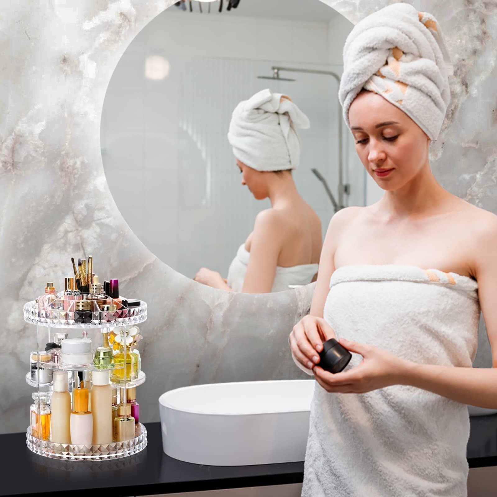 Dicke und langlebige Tabletts sind stark genug, um schwere Produkte zu halten. Ob auf einer Badezimmer-Arbeitsplatte, einer Schlafzimmer-Kommode oder einem Schminktisch, dieser Make-up-Organizer ist praktisch genug, um als Ergänzung für jeden persönlichen Pflegebereich zu dienen 6 verstellbare Schichten bieten Platz für alle Ihre Kosmetika in verschiedenen Größen und Höhen. Rotierender Parfüm-Organizer für die Kommode, leichtes Luxus Das Kristall-Diamant-Design verbessert die Kapazität und Schönheit. Einfache Montage und Demontage des Make-up-Organizer-Regals. Make Up Organizer Drehbar V-HANVER Acryl Ake-up Organizer, Kosetik Aufbewahrung, Vanity Parfü Small Space Organizer Bathroom Ein Stück pro Preis mit zufälliger Verpackung Topchances Make Up Organizer 360 Grad drehbar