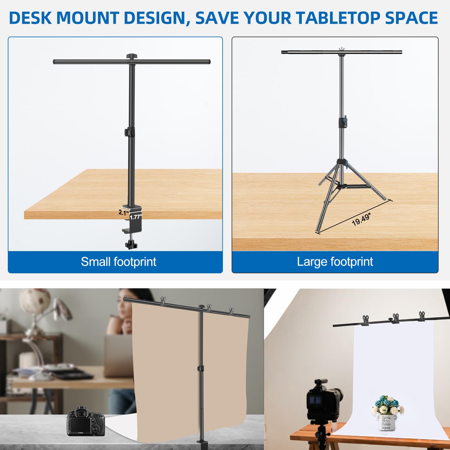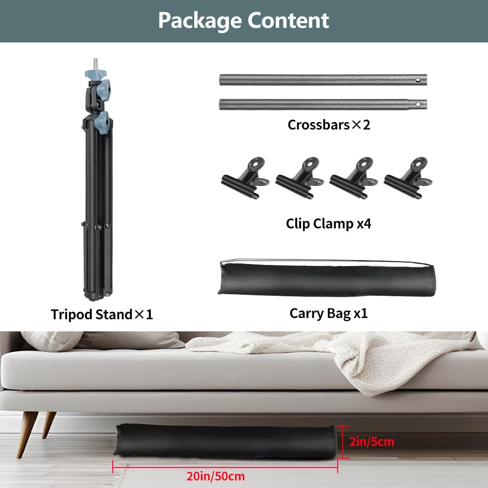 HEMMOTOP Tisch-Hintergrundständer, Klein, 5,6 X 7,5 M, Foto-Schreibtisch, Hintergrund-Papierständer Mit Klemmen, Posterständer, Halter, Banner-Ständer Mit Tragetasche T6875
