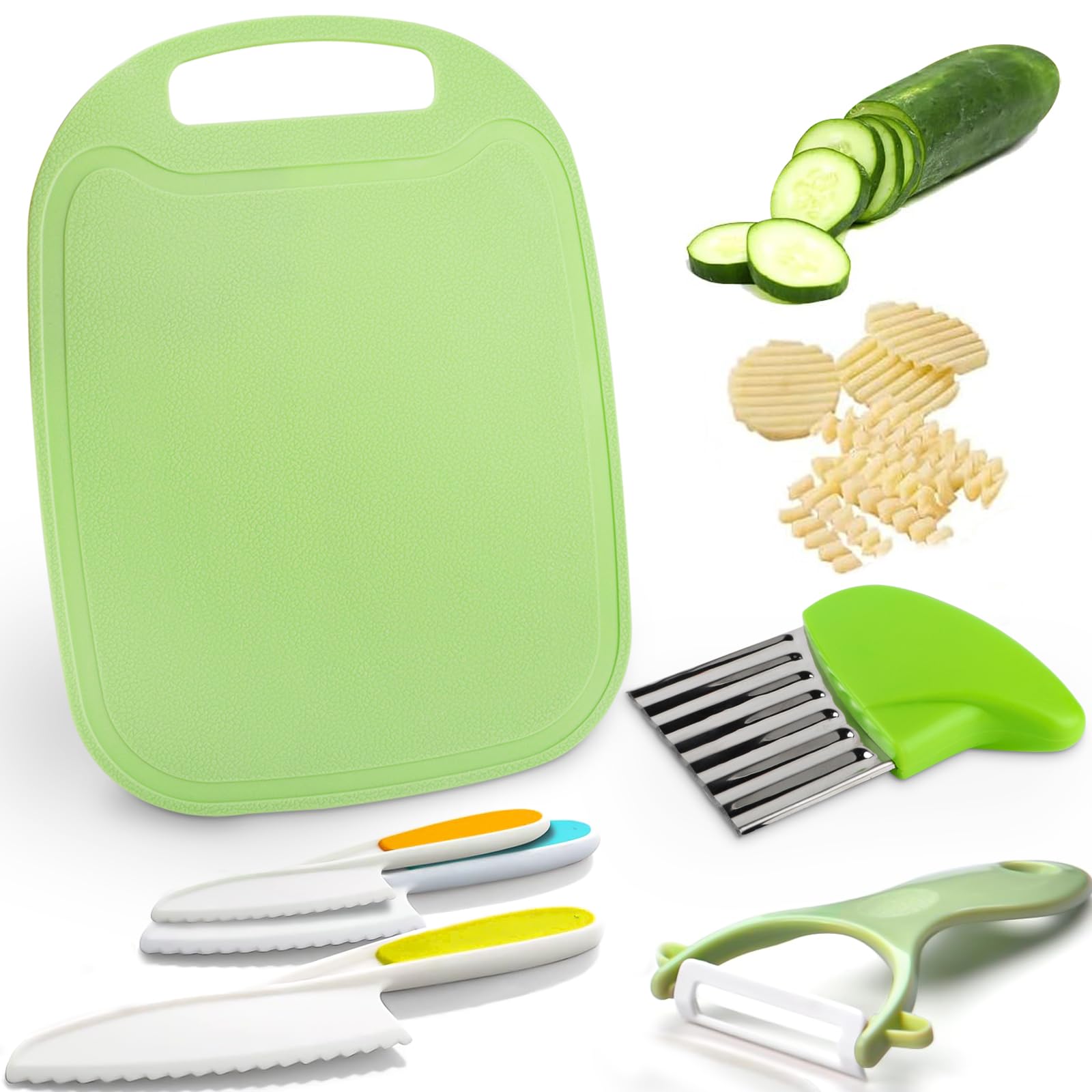 Vermittle deinem Kind die Schönheit des Bastelns mit Naturmaterialien mit den kindersicheren Messern von . Die farbenfrohen Kindermesser sind ideal als Schnitzmesser geeignet Geschicklichkeitstraining: Das Kindermesser ab 3 Jahre ermöglicht es Kindern, die Freude am Kochen zu genießen, mit ihren Müttern zu kochen, und kann auch die praktischen Fähigkeiten der Kinder trainieren, die Hand Auge Koordination und die kognitiven Fähigkeiten verbessern und die Unabhängigkeit fördern. 25 teiliges Küchenmesserset: 1 Schürze, 1 Paar Ärmel, 1 Schneidebrett, 1 Wellenmesser, 1 Schäler, 4 Kunststoffmesser, 6 Ausstechformen, 10 Obstgabeln. Goodchef Kindermesser 8-teiliges Holzmesser Set,Montessori Messer für Kindermesser ab 2 Jahren, BPA-frei, kinder sicheres Lernmesser,Geschenkidee für kleine Köche(Krokodil Geschenke 2 Jährige Mädchen HOLZWURM Kinder-Schnitzmesser In Leder-Tasche, Ideales Taschenmesser Und Outdoormesser Für Kinder Zum Schnitzen | HOLZWURM Werkzeuge Pommes Schneider Ergonomisches Design: Der Griff des Kindermessers ist ergonomisch gestaltet, der Bogen passt sich der Handform an, liegt angenehm in der Hand, rutscht nicht leicht ab und das Schneiden ist arbeitssparender. 8-teiliges Kindermesser Set mit Krokodil-Holzmesser Enthält 4 Kindermesser, 1 Kinder-Schälmesser, 1 Krokodil-Holzmesser, 1 Blumenmesser mit Wellenschliff und 1 Schneidebrett umfangreiches Zubehör für kleine Küchenhelfer, die sicher schneiden lernen und spielerisch den Küchenalltag entdecken