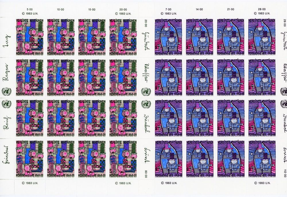UNO NEW YORK HUMAN RIGHTS HUNDERTWASSER 1983 ET GUMMI (Neu (gemäss