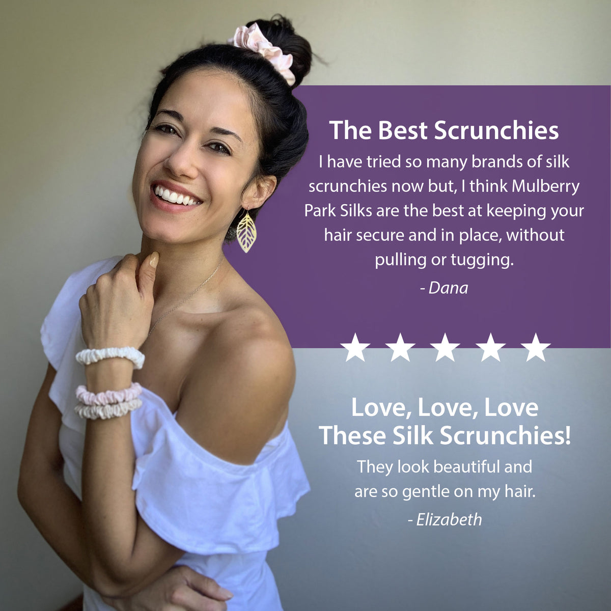 Fluffy Touch Pure Silk Scrunchie Diese Haargummis haben eine große Elastizität und geben Ihnen einen sicheren Sitz, der nicht abrutscht. Geeignet zum Tragen im Alltag oder beim Sport. Elastisches Material, passt leicht zu verschiedenen Kopfgrößen, Einheitsgröße Haargummi aus Baumwolle 100 % Charmeuse-Maulbeerseide mit einem Gewicht von 22 Momme Haargummi Seide Jasmine Silk Pure Silk Charmeuse Scrunchie – Haargummis Für Haare (3 Stück, Skinny Grey Seidenhaargummis Zum Schlafen