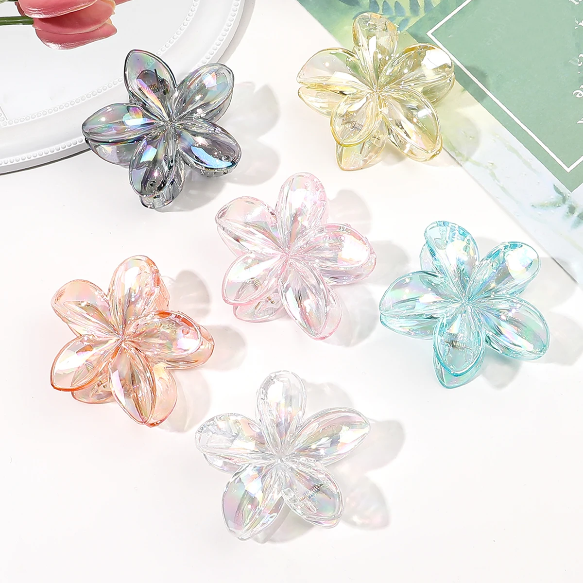 6 STÜCK GROSSE Haarklammern, Blumen-Haarspangen,Klaue Clips, Matte
