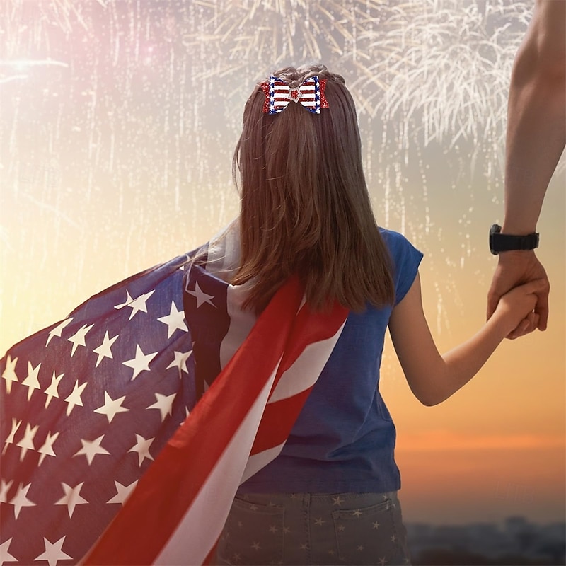 Patriotische Snap Clip Set, Haarschmuck Schleifen für Mädchen Kleinkind Frauen, USA Amerika 4. Juli, rot weiß und blau, Sommer 2024, Mama und ich 4 x Haarspangen mit Schleife, in 4 Designs, jedes Design hat 1 Stück, exquisite Designs und Festival-Elemente, die die Haarspange sehr geeignet für die Independence Day-Haardekoration machen Artikel: Haarschleifen-Clips für den Unabhängigkeitstag., Material: Glitzer., Größe: 9,5 cm. Farbe: Rot, Weiß, Blau., Lieferumfang: 2 Stück., Anmerkungen: 1., Aufgrund unterschiedlicher Beleuchtungsverhältnisse und verschiedener Monitoreinstellungen kann die Farbe des Produkts leicht von der tatsächlichen Farbe abweichen., 2., Aufgrund manueller Messung kann es zu leichten Abweichungen kommen. 【Exquisites Geschenk】Entzückende patriotische Haarspangen sind ein tolles Geschenk für Ihre Tochter, Schwester oder andere weibliche Freunde, lassen Sie sie von den Mädchen abheben und beeindruckende Erinnerungen hinterlassen. Vielfältige Anwendungsmöglichkeiten: Haarschmuck mit amerikanischer Flagge eignet sich für viele Gelegenheiten, Unabhängigkeitstag, Gedenktag, Veteranentag, patriotische Party, Schule und Alltag. Alle modischen Inspirationen & die neuesten Trends finden Sie online bei SHEIN 1 Stück 4. Juli patriotische Glitzer Haarschleife Clips für Mädchen, Unabhängigkeitstag Pailletten Haarspangen, amerikanische Flagge farbige Haaraccessoires bei SHEIN entcken Einzigartiges Design: melyde Independence Day Glitzer-Haarspangen bestehen aus roten, weißen und blauen Farben, mit einem Strass-Stern-Strass in der Mitte, machen Sie auffälliger und ansprechender Patriotische Snap Clip Set, Haarschmuck Schleifen Für Mädchen