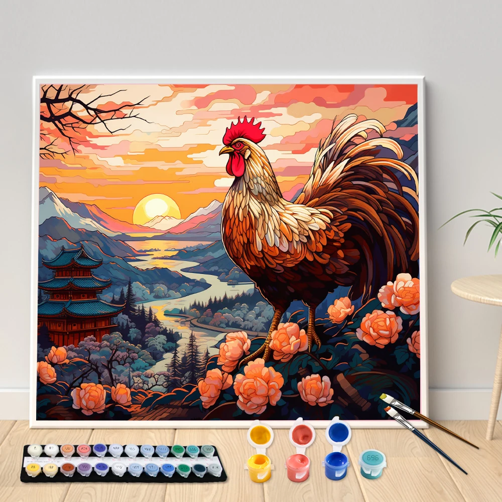 Hand Acryl Gemalt Farbigen Hahn Und Huhn Acryl Malerei Von Zahlen DIY Leinwand Kunst Home Coration Überraschung Geschenk-Kit
