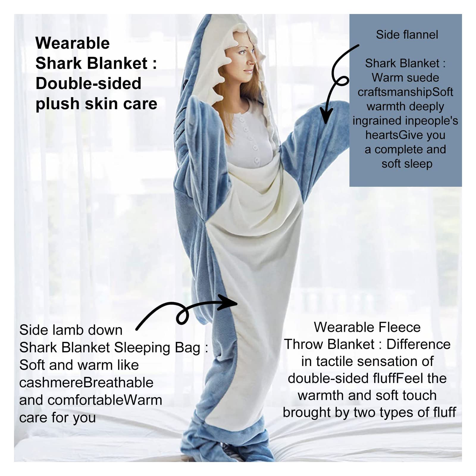 Hai-Decke Für Erwachsene, Hai-Decke, Superweich, Gemütlich, Flanell-Kapuzenpullover, Tragbare Decke, Hai-Decke, Kapuzenpullover, Schlafsack (190,5 Cm