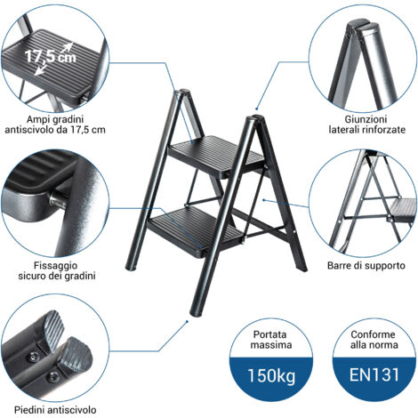 Vielseitig einsetzbar – Ob beim Putzen, Einräumen von Schränken oder als temporäres Regal: Diese kleine Klappleiter ist ein praktischer Alltagshelfer in jedem Haushalt. Diese schützt vor Korrosion, sorgt für ein modernes Finish und macht die Leiter für den Innen- und geschützten Außeneinsatz geeignet. Ideal für müheloses Verstauen hinter Türen, in Schränken oder unter Möbeln. Breite, rutschfeste Stufen (17,5 cm) – Die extrabreiten Stufen bieten sicheren Halt und hohen Komfort bei jedem Aufstieg. Ultrakompaktes, faltbares Design – Dieser kleine Klapptritt lässt sich mit nur einem Handgriff flach zusammenklappen. EN 131 zertifiziert – Entspricht den europäischen Sicherheitsstandards für Leitern – für verlässliche Stabilität bei jeder Nutzung. 1 Breite Stufen 2 Sicherheitsstreben 3 Robuste Seitenholme 4 Rutschfeste Füße 5 Sichere Befestigung Hengda Stehleiter Klappleiter 2 Stufen Weiß Trittleiter Klapptritt Alu Leiter 3 Stufen Hailo Hailo Alu-Klapptritt, 2 Extra Breite Stufen, 4392-551, 4392-551 Klapptritt 2 Stufen Hochwertige Materialien – Gefertigt aus robustem Q195-Stahl mit rostbeständiger Pulverbeschichtung. Die besten Produkte im Bereich "Trittleiter 2 Stufen" sowie aktuelle Angebote findest Du hier. B&S Trttleter Alu Klapptrtt 2 Stufen Slm mt oberen Bügel Diese vielseitige Trittleiter kann auch als Hocker für kleine Haustiere und Kinder verwendet werden. Die Stufenleiter besteht aus einem stabilen Metallrahmen mit rostfreier Oberfläche und zeichnet sich durch hohe Stabilität und lange Nutzungsdauer aus