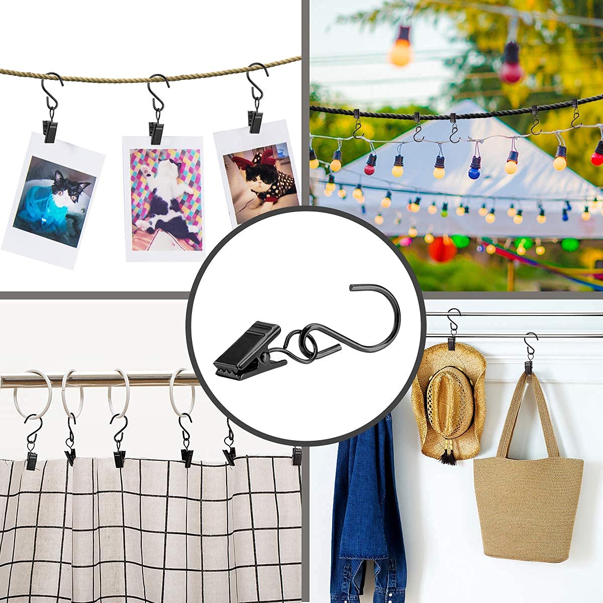80 Stück Metall Clips Haken, Vorhang Clips Für Lichterketten Hängende Fotos(Silber