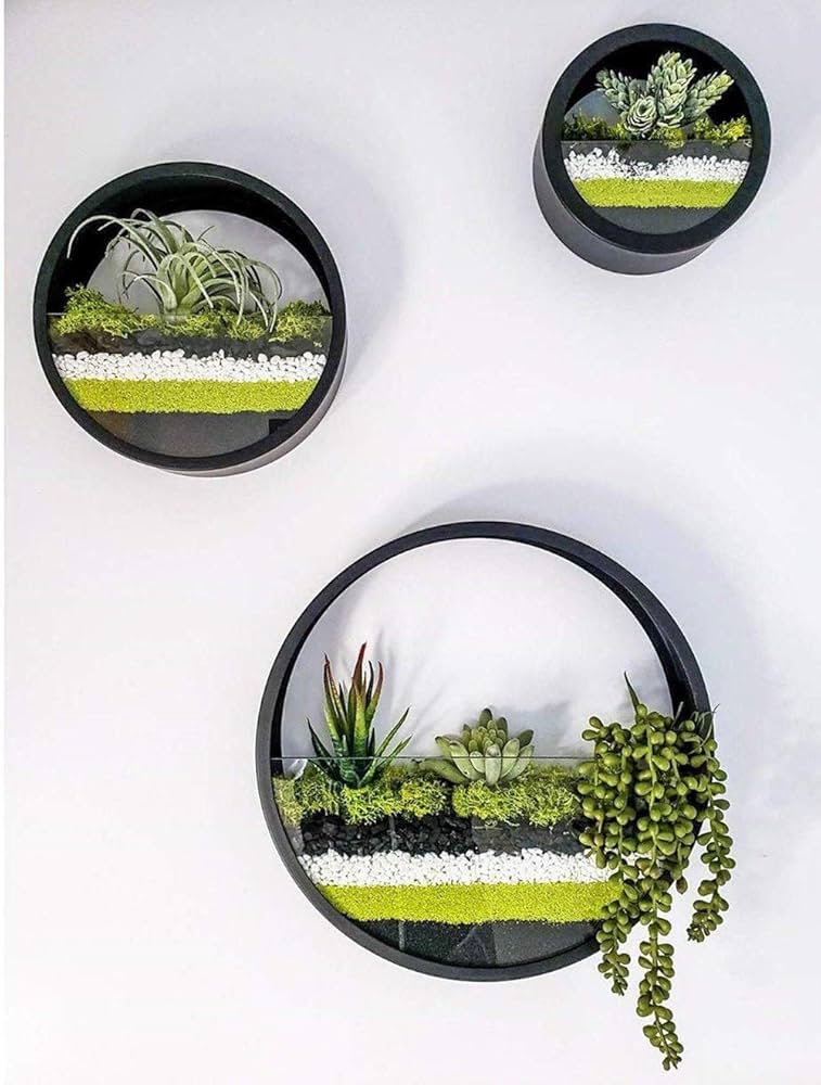 Sie passen auch perfekt zu künstlichen Pflanzen, um Ihrem Raum mühelos Grün zu verleihen. AERLO Wandmontierte Blumentöpfe, 2 Stück 【Einfache Installation】Jedes Set enthält Wandhaken, mit denen Sie einfach überall in Ihrem Haus oder Büro eine schöne Pflanzenanzeige aufhängen können. Blumentopf Wand AERLO Wandmontierter Metall-Übertopf – Halbmond-Topf Zum Aufhängen Für Sukkulenten, Kräuter, Luftpflanzen, Wohnzimmer, Kinderzimmer – Rustikales Gold-Finish Hängeampel Innen Könnte beinhalten: Sechs Luftpflanzen in dunkelbraunen geometrischen Holzgefäßen. Die Gefäße sind in zwei Reihen. Luftpflanzenhalter Minimalist Geschenk Boho... Diese Pflanzgefäße sind leicht und langlebig für den Innen- und Außenbereich. 【Vielseitige Dekoration】 Diese Pflanzgefäße sind ideal für Niedrigwasserpflanzen, die in flachen Topftiefen gedeihen, wie Sukkulenten, Luftpflanzen und Kakteen. Stilvolles Design: Verschönern Sie Ihre Wohnkultur mit unserem atemberaubenden mattschwarzen Metall-Wand-Pflanzgefäß-Set. Drainagelöcher nicht im Lieferumfang enthalten, da diese für Wandbehänge geeignet sind. 【Größe und Qualitätsmaterialien】 Jeder Halbmondtopf ist 30,5 cm breit und hat eine innere Tiefe von 8,9 cm. BOLTZE Dekosäule Dekosaeulen Set Fenja Schwarz Metall mit Schale und floralem Design (2 St Produktbeschreibung - Set aus 2 schwarzen Metall-Pflanzgefäßen Arte Regal Beschreibung des Produkts: Packung mit 2 Garten-Pflanzgefäßen. Hergestellt mit einer Metallstruktur. Sie haben eine schwarze Oberfläche