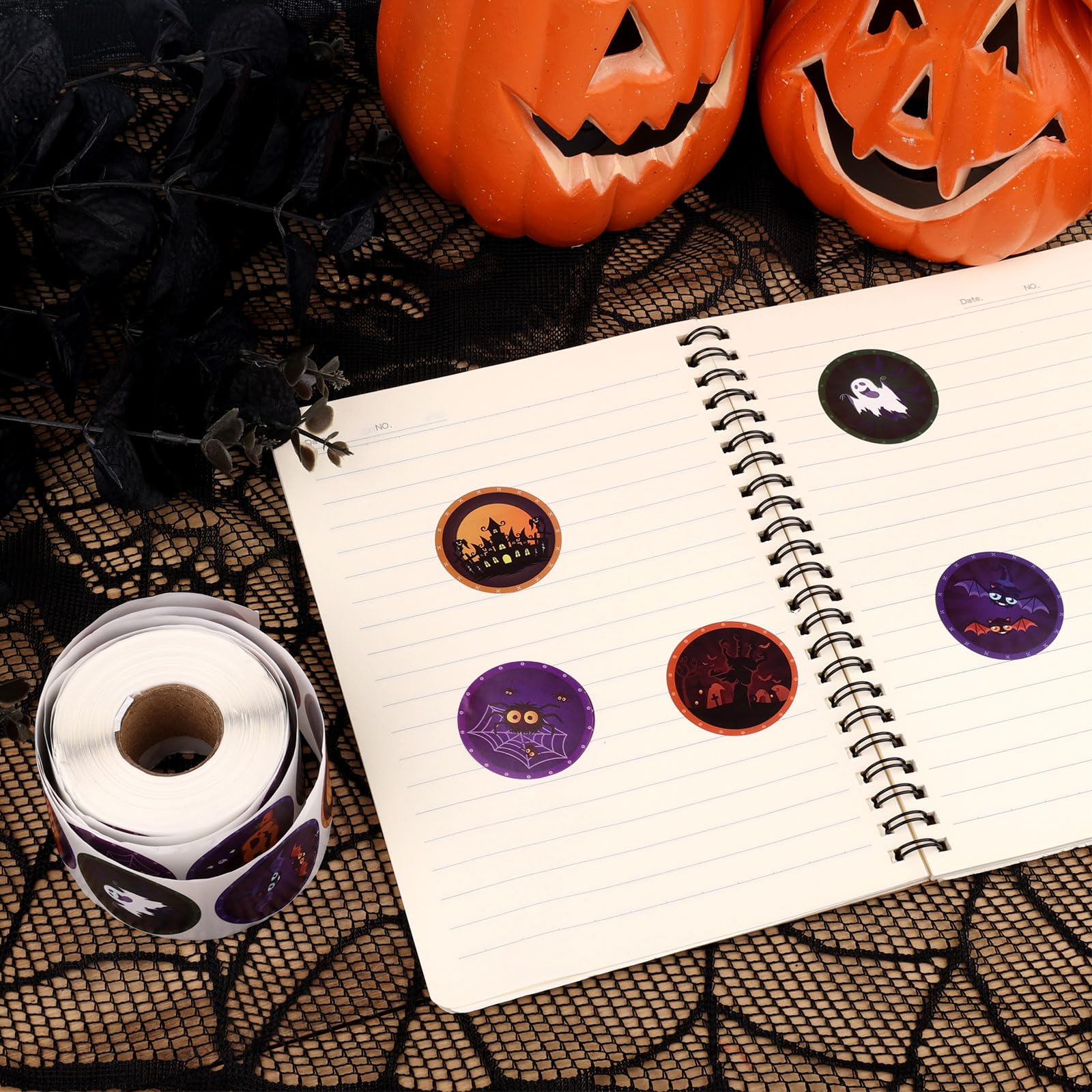 500St Halloween Aufkleber Kinder, 2,5cm Süß Rund Halloween Aufkleberrolle 8 Designs Kürbis Geist Fledermaus Halloween Deko Aufkleber Für Scrapbooking Umschläge Partygeschenke
