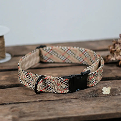 Tau Halsband BRISTOL Beige Kariert Mit Steckschnalle
