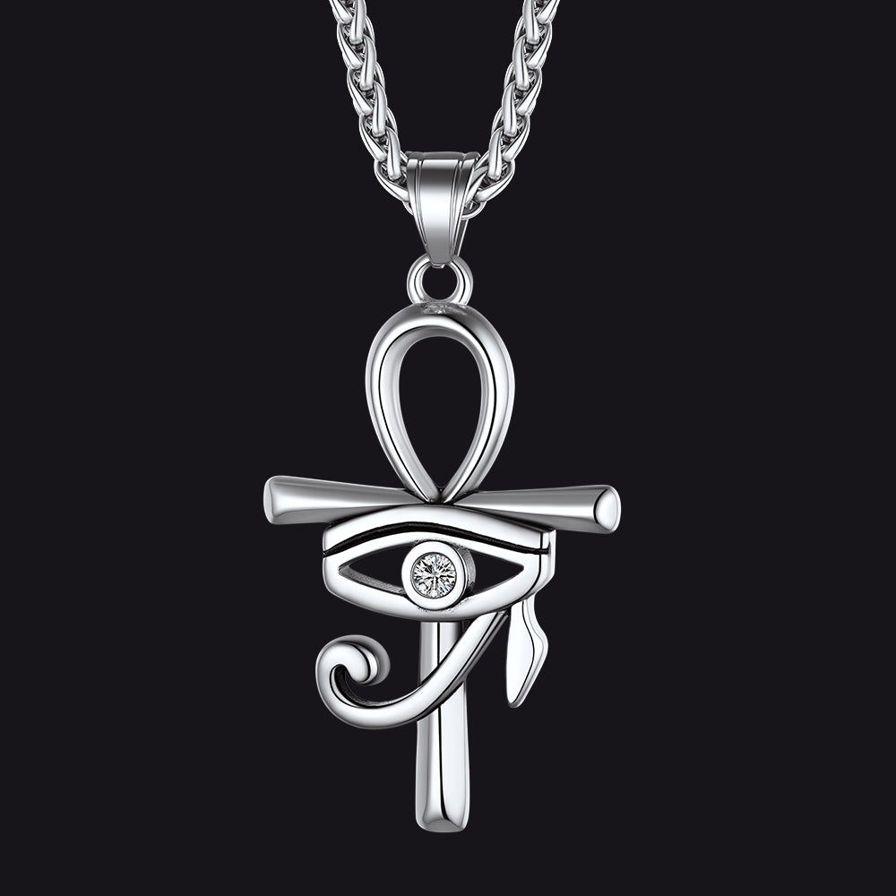 YFN Ankh Kreuz Halskette Sterling Silber Auge Des Horus Anhänger