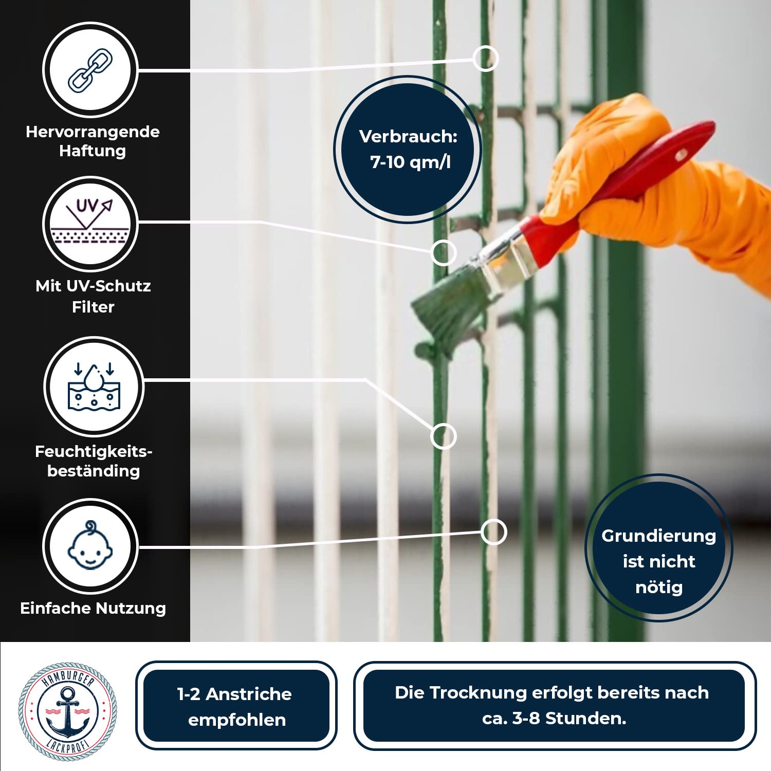 Hamburger Lack-Profi 3 In 1 Verkehrsblau RAL 5017 - Rostschutz