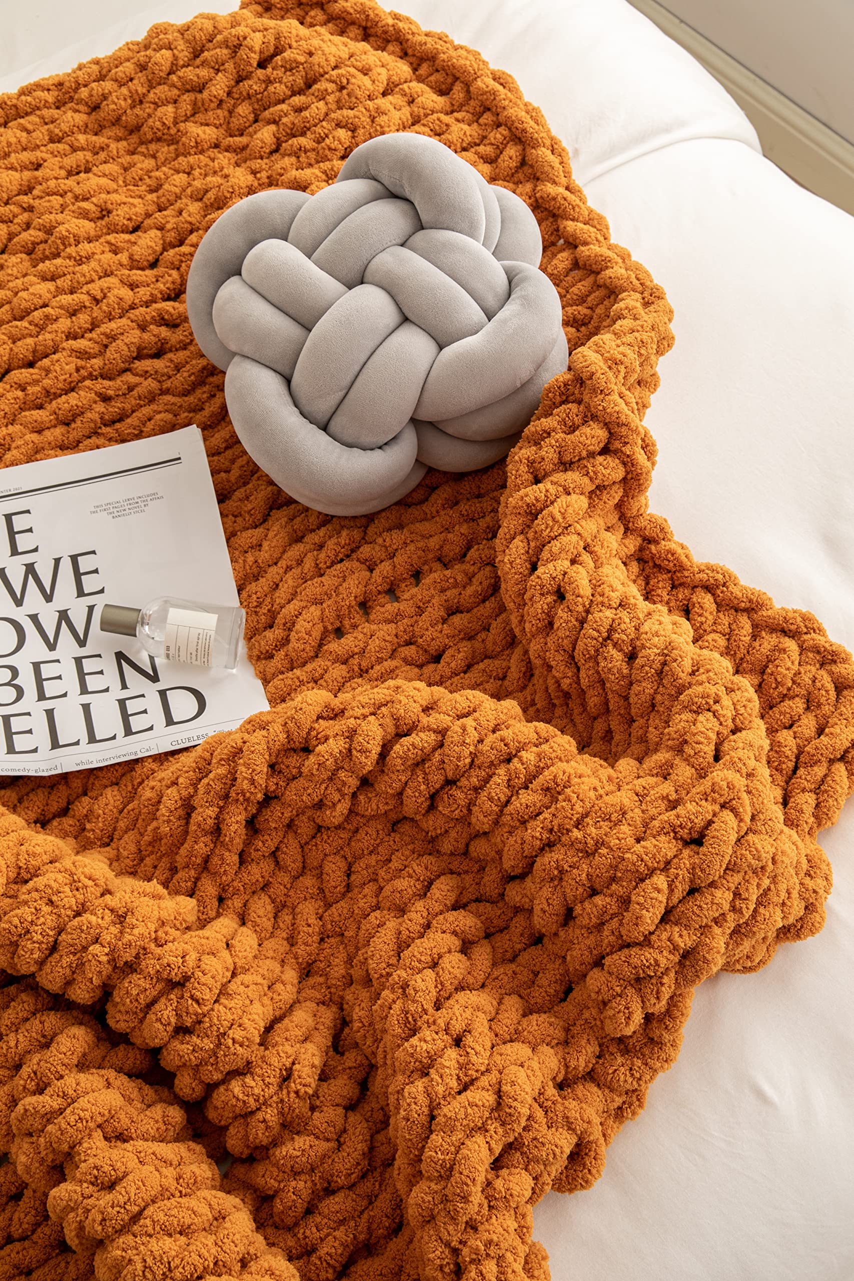 Grobstrick-Decke, Überwurf, Handgefertigt, Chenille-Garn, Zopfstrick