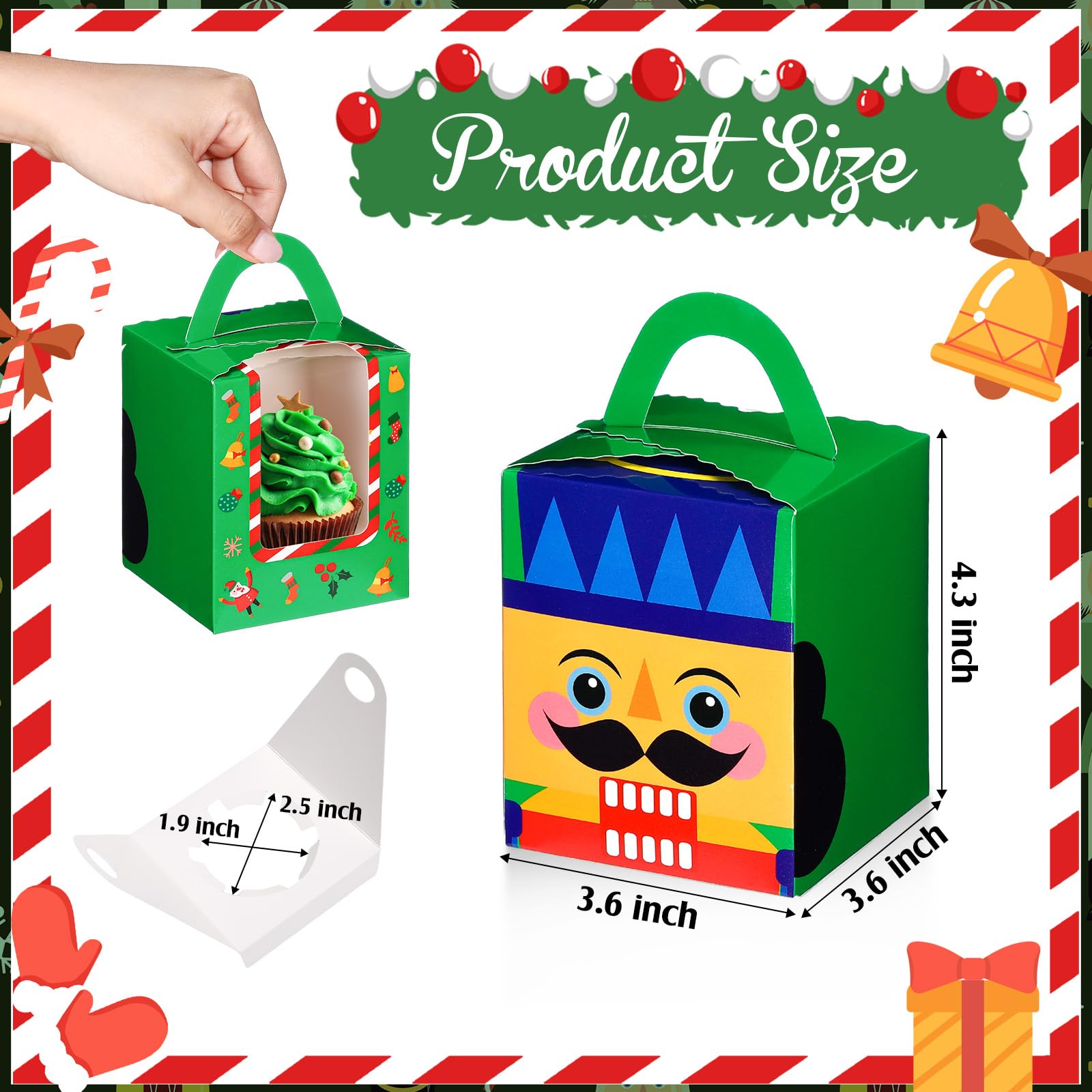Pack Of 24 Christmas Cupcake Boxes Christmas Cookie Boxes With Window Insert Handle Christmas Muffin Pastry Holder Boxes Xmas Cupcake Gift Box Bakery Treats Boxes For Christmas Party