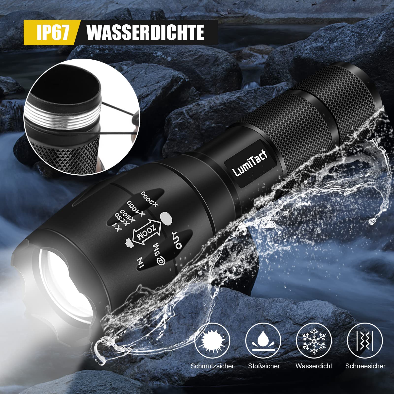 Sie sind ideal für Camping, Outdoor-Abenteuer, Heim- und Sicherheitsanwendungen und bieten gegenüber Einweg-Batterietaschenlampen den Vorteil niedriger Betriebskosten und geringer Umweltbelastung WASSERFEST: IPX6 wasserdichte Zertifizierung schützt vor Regen, Schnee und Spritzern. Wiederaufladbar und langlebig: 2600 mAh wiederaufladbarer Lithium-Akku bietet bis zu 20 Stunden Dauerbetrieb. Aufladbare Taschenlampe – Beste im Vergleich - 2025 Shadowhawk S1476 Lädt Nicht LED Handscheinwerfer Wiederaufladbar, Super Hell 8000 Lumen Led Taschenlampe Led Kompaktes und tragbares Design: Nur 205 g Gewicht und geringe Größe, um es bequem überall hin mitzunehmen. Mit 6 Beleuchtungsmodi, einschließlich Ultra, Hoch, Mittel, Niedrig, Stroboskop und Blinken, erhalten Sie die Flexibilität, die richtige Beleuchtungsstärke für jede Outdoor-Aktivität zu wählen, vom Camping und Wandern bis hin zur Arbeit oder im Notfall
