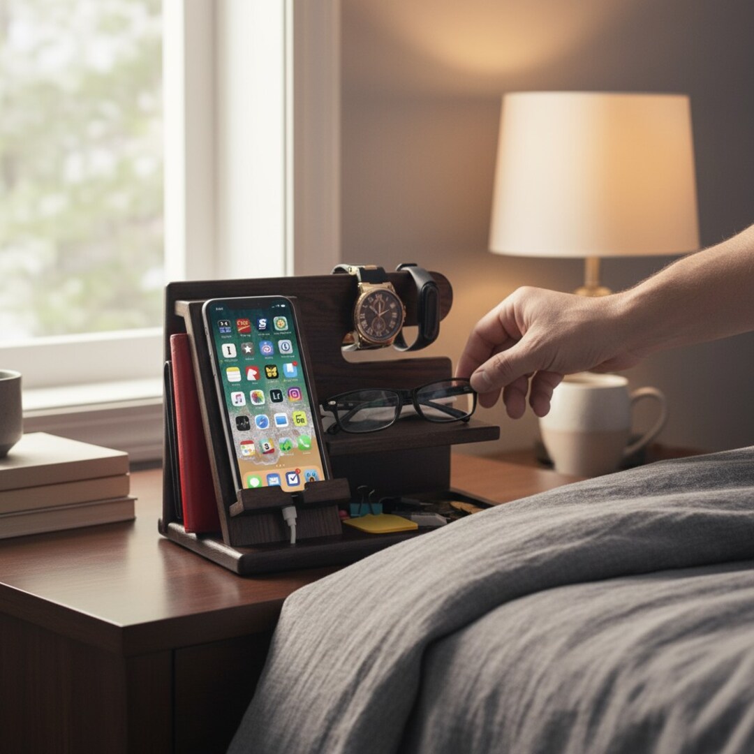YAREM ECOLIFE Handy-Dockingstation Aus Holz, Börse, Stünder, Uhren-Organizer, Herren, Geschenk