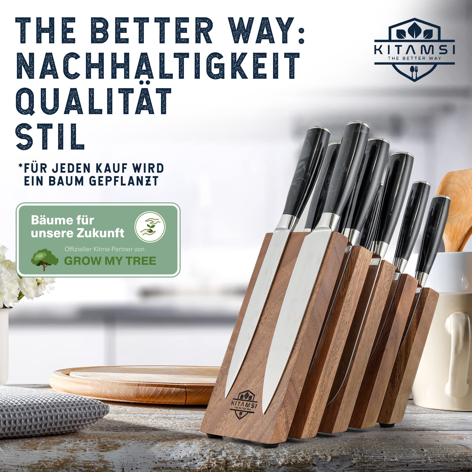 ✅ DESIGN ZUBEHÖR: Mit dem stilvollen Küchenmesser Halter aus Akazieholz von Dellinger kommt nicht nur Ordnung in die Küche, sondern Style. ✅ EINZIGARTIG: Da es sich bei dem Magnet-Messerhalter um ein Naturprodukt handelt, ist jedes Exemplar durch die Holz Maserung einzigartig. Die Tiefe des Standfußes beträgt 12 cm. Dellinger Magnetständer aus Akazienholz (ohne Messer) Der Dellinger Magnet-Messerständer aus Akazienholz dient der sicheren, sauberen und geordneten Aufbewahrung von Messern. Der Messer Block ist nur für magnetische Produkte geeignet. Wir garantieren Ihnen, dass Sie ein qualitativ hochwertiges Produkt erhalten, das Ihnen den besten Service bietet. Mehr Individualität auf Ihrer Arbeitsfläche! esserblock Holz agnet – Die 15 besten Produkte i Vergleich... Dellinger Messer Sets Hanseküche Magnet-Messerblock Messerblock Magnetsch Ohne Messer Drehbarer Messerhalter 1tlg Fester Stand Mit Gummifuessen 360 Grad Drehbar Starker Magnet Braun Magnet Messerhalter Zeitloses Design, sichere und hygienische Messeraufbewahrung, leichter Zugang zu den Messern, spart Platz auf dem Küchentisch. ✅ WARTUNG: Reinigen Sie den Halter mit einem trockenen oder leicht feuchten Tuch., Nicht spülmaschinengeeignet! lll Messerblock magnetisch ohne Messer Ein Geschenk von uns wird Sie garantiert überraschen und begeistern! Praknu Magnet-Messerblock Magnetischer Messerblock ohne Messer - Beidseitig Starker Magnet (1tlg), Aus FSC-Akazienholz: Für 10 Messer, Rutschfest, beidseitig Magnetisch braun