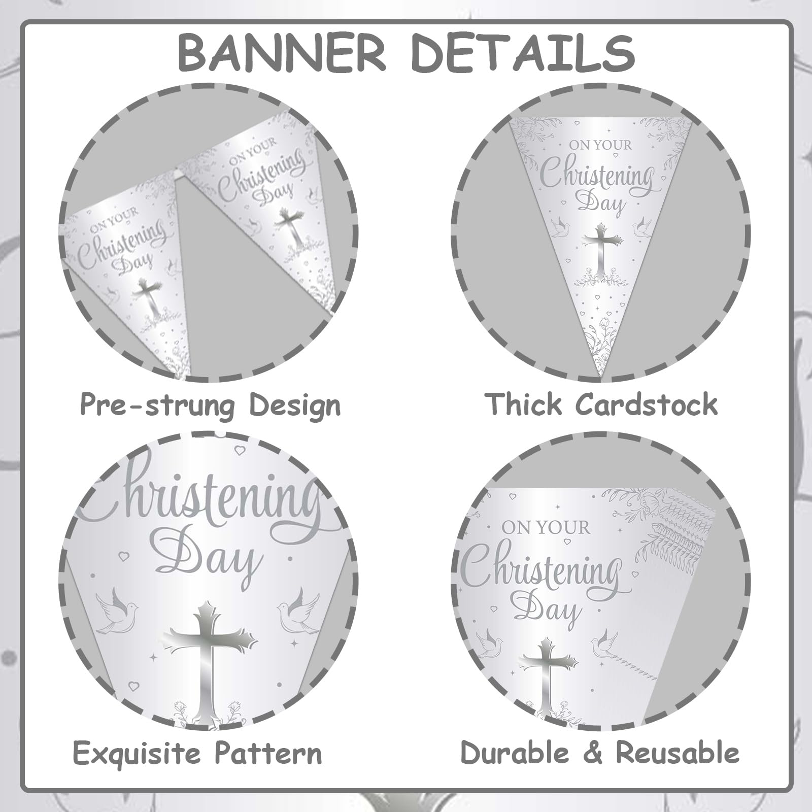 Taufe Dekorationen Für Jungen Blau, Happy Taufe Banner Luftballons, On Your Christening Day Bunting Banner, Baby Blau Weiß Ballonbogen Kuchen Topper Für Taufe Party Erstkommunion Babyparty