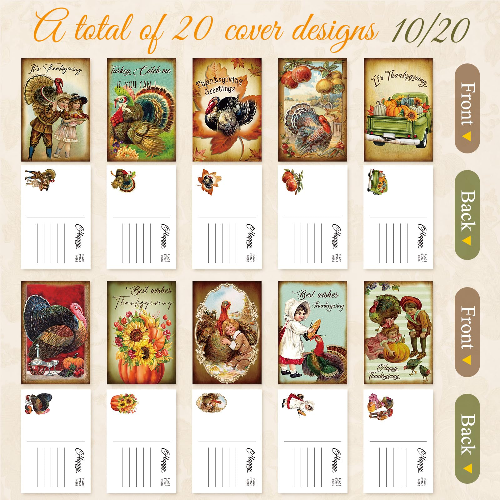 50 Stück Happy Thanksgiving Grußkarten Postkarten 10,2 X 15,2 Cm Herbst