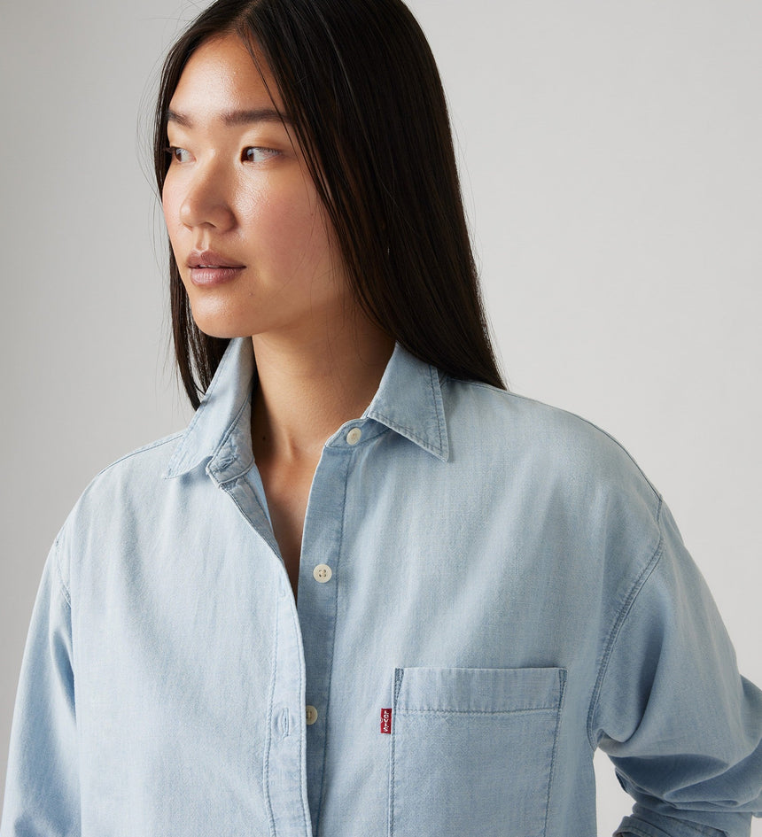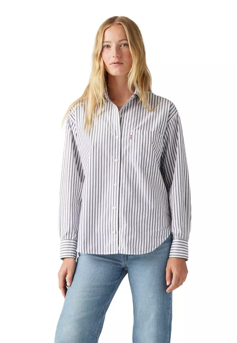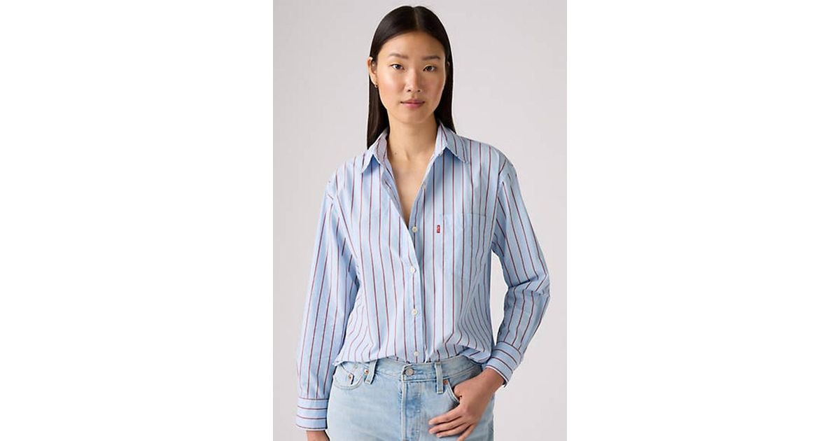 Levis 501 Original Damen Harlie Boyfriend Shirt - Weiß | 's® AT Blusen & Tuniken Für Damen Ein lässiges Hemd zum Knöpfen, Relaxed Fit, Mit einer Brusttasche Es ist ein locker sitzender, vielseitiger Allrounder, der sowohl solo als auch über deinem Lieblings-T-Shirt getragen gut aussieht. Levi's Hemdbluse The Classic, Damen, Gr. L (40), weiß (hellweiß_vm), Web, Obermaterial: 100% Baumwolle, figurumspielend, 1-Knopf-Manschette mit Schlitz, Blusen, Kleine Logo-Stickerei auf der Brust Levi's® HARLIE BOYFRIEND - Hemdbluse - serenity blue/blue denim für 38,97 € (05.12.2025) Gratisversand für die meisten Bestellungen Hemd Levis Western Blau für Damen Blusen-Stil: Klassische Bluse; Design: 1-Knopf-Manschetten, Abgesteppter Saum/Kante, Knopfleiste, Rückenfalte, Runder Saum, Umlegekragen, Brusttasche; Verschlussart: Knopfverschluss; Material: Baumwolle; Muster: Gestreift; Hemdkragen: Kentkragen; Details: Falten; Extras: All-Over-Muster, Label Patch/Label Flag, Weicher Griff; Passform: Lockere Passform; Ärmellänge: Langarm; Länge: Normale LängeModel: Harlie Boyfriend Shirt