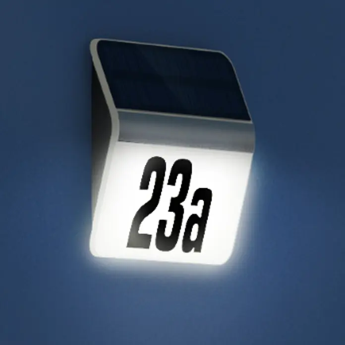 【Mühelose Installation】 3 Sätze von 0-9 Zahlen und1 Satz von A-Z Buchstaben, . 【Solarstrom】Diese Solarhausnummern für draußen nimmt Energie direkt von der Sonne und wandelt sie in Strom um, um die interne wiederaufladbare Batterie aufzuladen, es leuchtet automatisch auf, wenn die Dämmerung erkannt wird und geht bei Sonnenaufgang aus. Nachts leuchtet das Schild automatisch auf und ist aus der Ferne sichtbar, sodass Zustellfahrer und Gäste Ihr Haus nicht verpassen. Für eine optimale Ladeleistung wird dringend empfohlen, das Adressschild in direkter Sonneneinstrahlung zu installieren. 【Gut sichtbar 】Dieses Adressschild kombiniert eine Solarleuchte mit einer Türnummer. Enthaltene Schrauben, Expansionsstopfen und doppelseitige Aufkleber. Sie leistet hervorragende Arbeit, um Ihnen auch tagsüber die Adressnummern anzuzeigen. Deine Hausnummer, die nachts leuchtet! Dieses Solar-Hausnummernschild ist individuell mit deiner Nummer und Straßenname personalisierbar BlingBin Hausnummer Adressschild Solar Hausnummernleuchte LED Solarleuchte Fuer Haus Hof 1er Set 1 St Bodenstecker Wandmontage Universal Dreifarbige Beleuchtung 3 Modi Solar Beleuchtete Hausnummer Wasserdicht Fuer Den Aussenbereich S05ef0bn Es fügt auch einen Hauch von Eleganz in Ihre Außeneinrichtung. Bei günstige Preise für Beleuchtete Hausnummer Solar vergleichen. Paulmann 79849 Outdoor Solar Hausnummer 8 IP44 3.000K 02W 282 Angebote zu Beleuchtete Hausnummer Solar im Hausnummern Preisvergleich. Bei günstige Preise für Beleuchtete Hausnummer Solar vergleichen