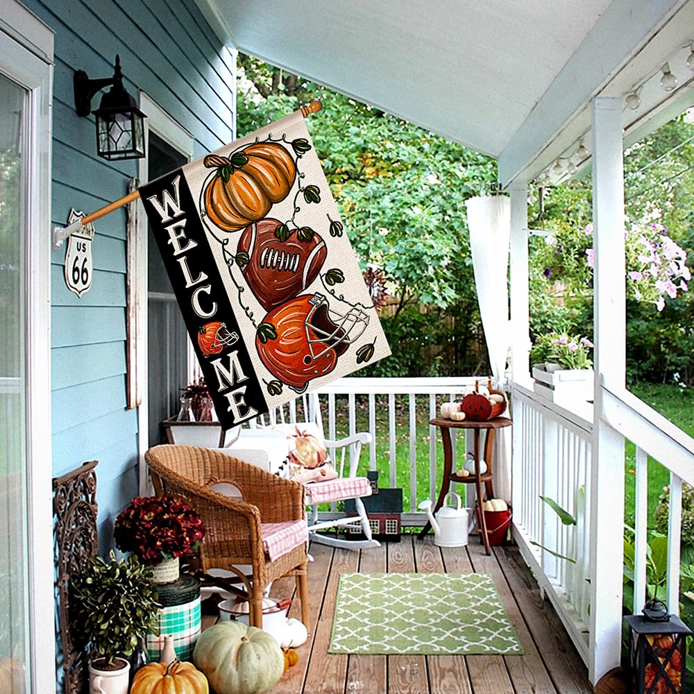 1 Stück, Herbst Fußball Willkommens Gartenflaggen, Vertikale