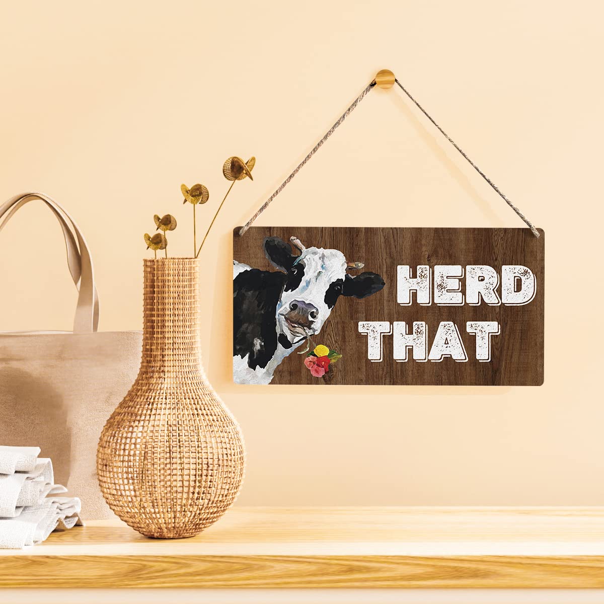 Herd That Schild Bauernhaus Kuh Holzschild Zum Aufhängen Retro Wandkunst Dekor Home Door Decoration 30,5 X 15,2 Cm