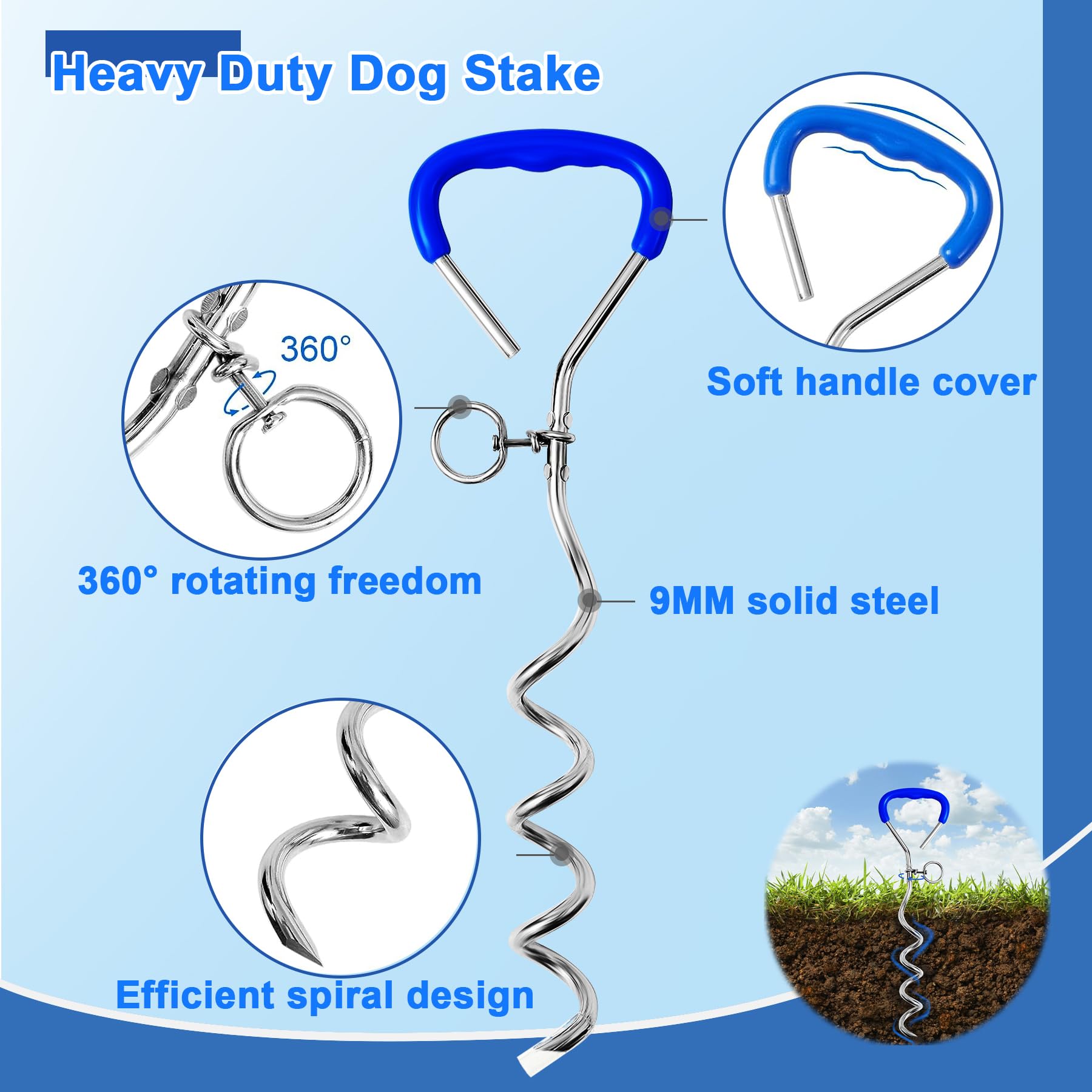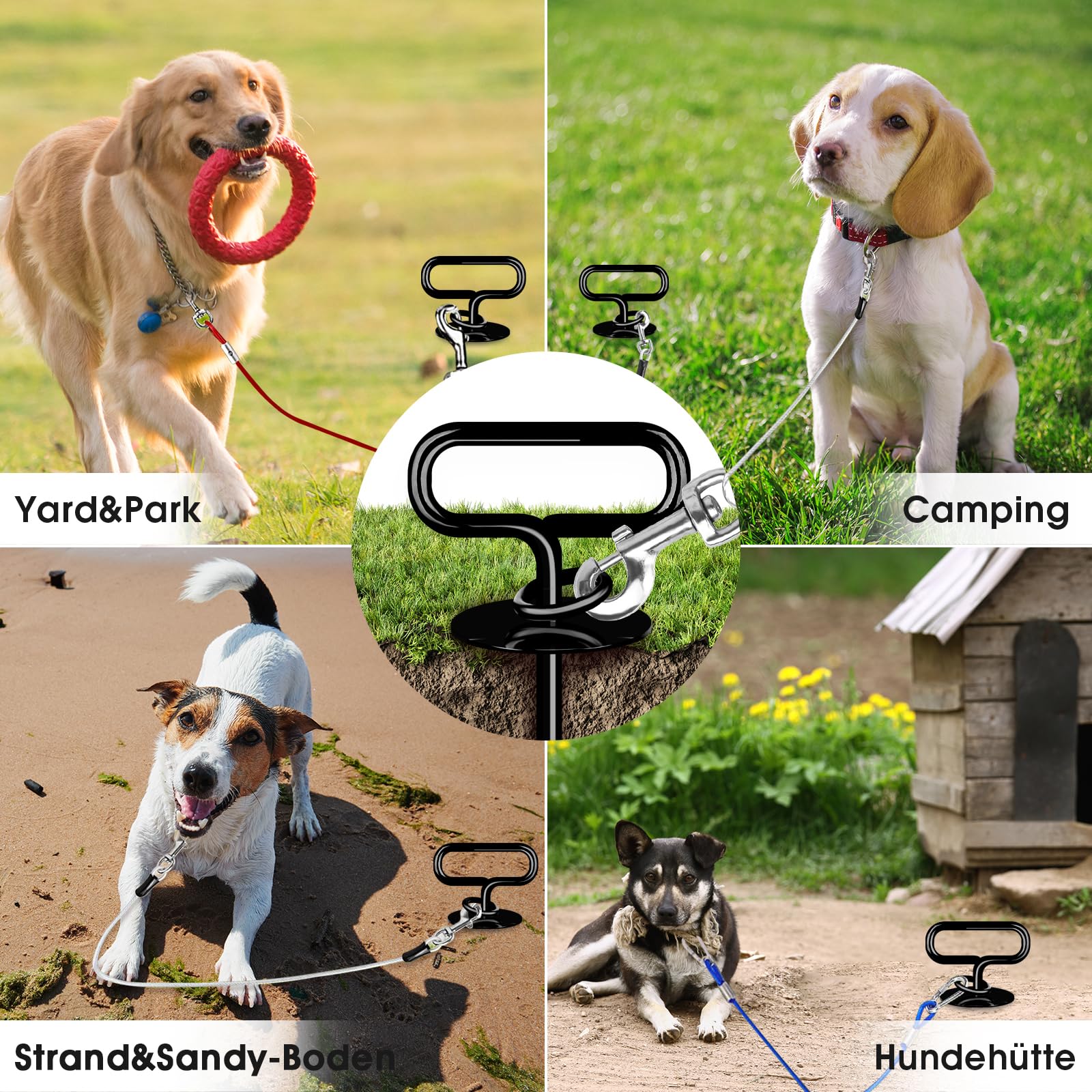 Strapazierfähige Hundeleinen-Heringe Für Hof, Wohnmobil-Hundeleine, Outdoor, Strandanker, Für Große Hunde, Camping-Essentials, 86 Kg, 360 ° Anti- Verknotungs-Verbindungsschlaufe (2 PS