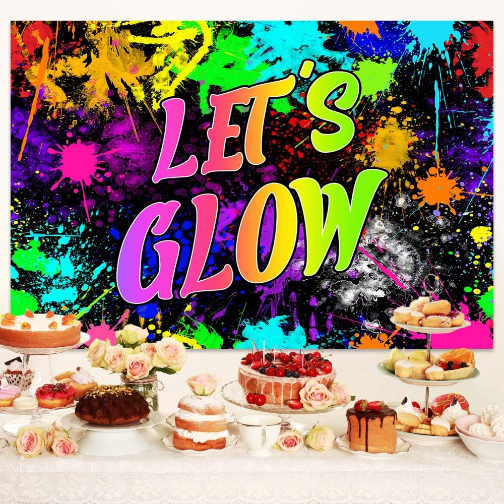 Neon Birthday Party Hintergrund 7x5ft Glow In The Dark Graffiti Splatter Happy Birthday Party Banner Fotografie Hintergrund Lasst Glow Dance Birthday Deco