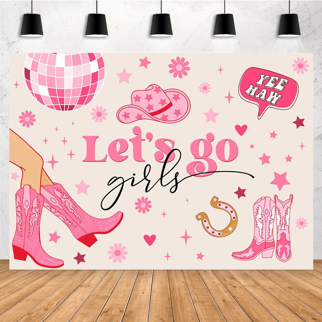 Ticuenicoa Let's Go Girls Hintergrund Let's Go Girls Bachelorette Party Dekorationen Junggesellenabschied Western Cowgirls Thema Fotografie Hintergrund Frauen Disco Dance Party Kuchen Tisch Banner