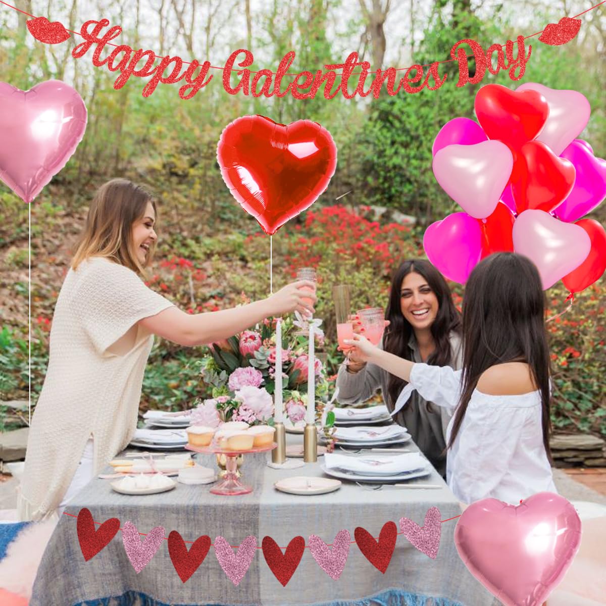 Happy Galentine's Day Hintergrund Rosa Rot Romantisches Herz Galentines Day Dekorationen Banner Für Valentinstag Hochzeitstag Mädchen Party Dekorationen Supplies Banner