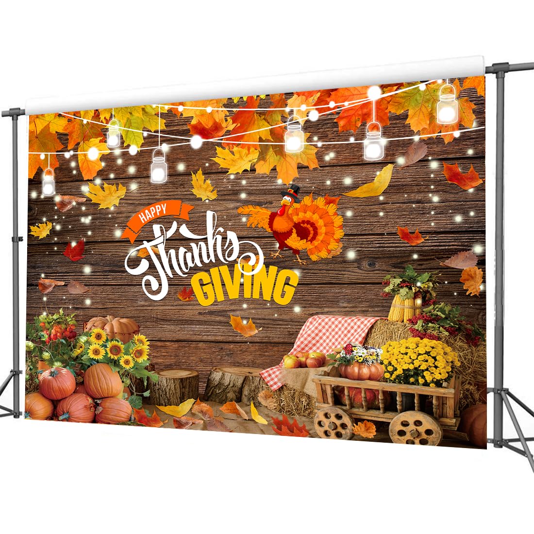 Thanksgiving Herbst Ernte Heu Ahornblätter Herbst Foto Hintergrund Rustikale Holztafel Scheune Ernte Fotografie Hintergrund Thanksgiving Neugeborenes Baby Geburtstag Party Banner Dekorationen 2,1x1,5