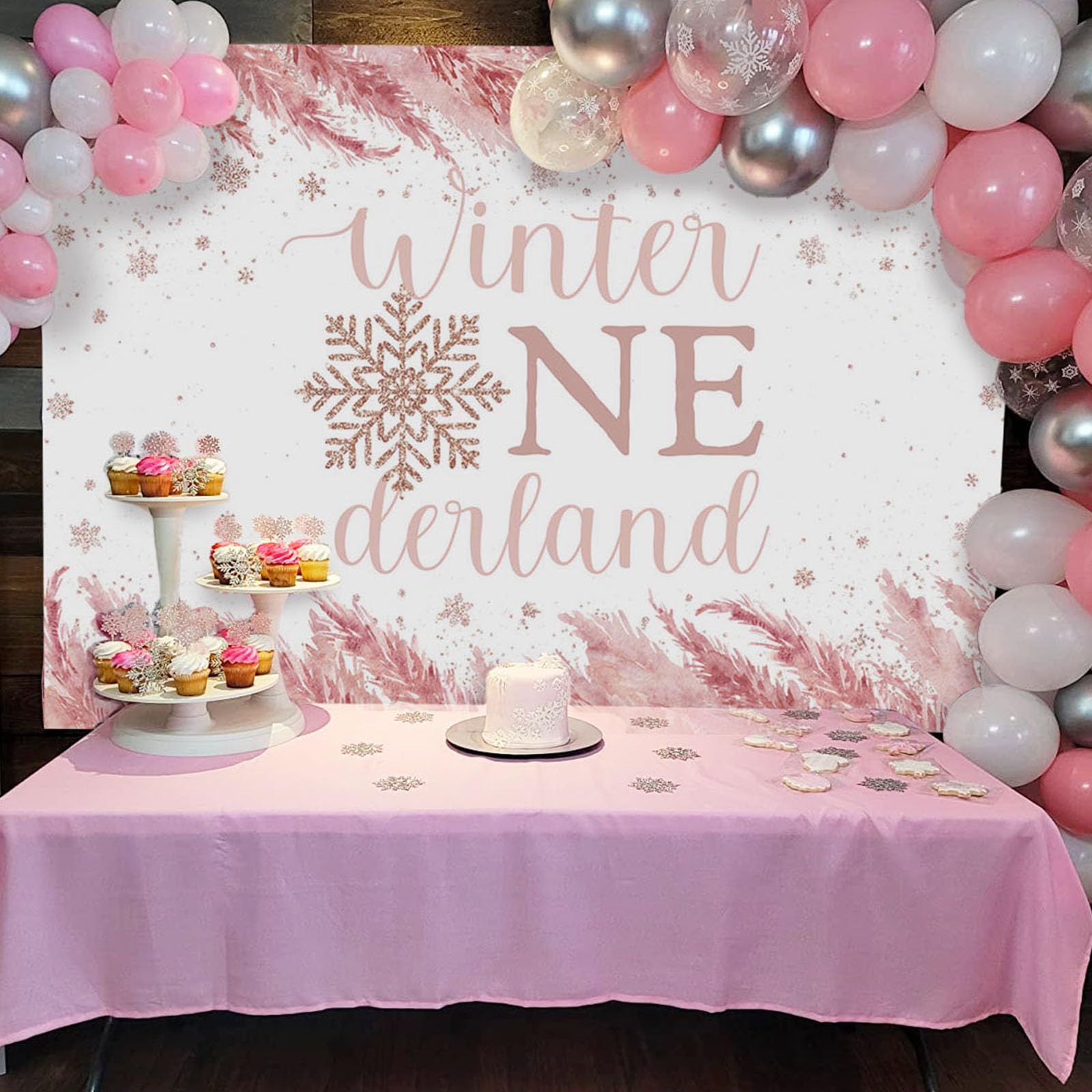 Winter Onederland Benutzerdefinierte Fotografie Hintergrund Schneeflocken Blumen Foto Hintergrund Rosa Silber Dekor Banner Photo Booth Requisiten Wanddekoration - Österreich