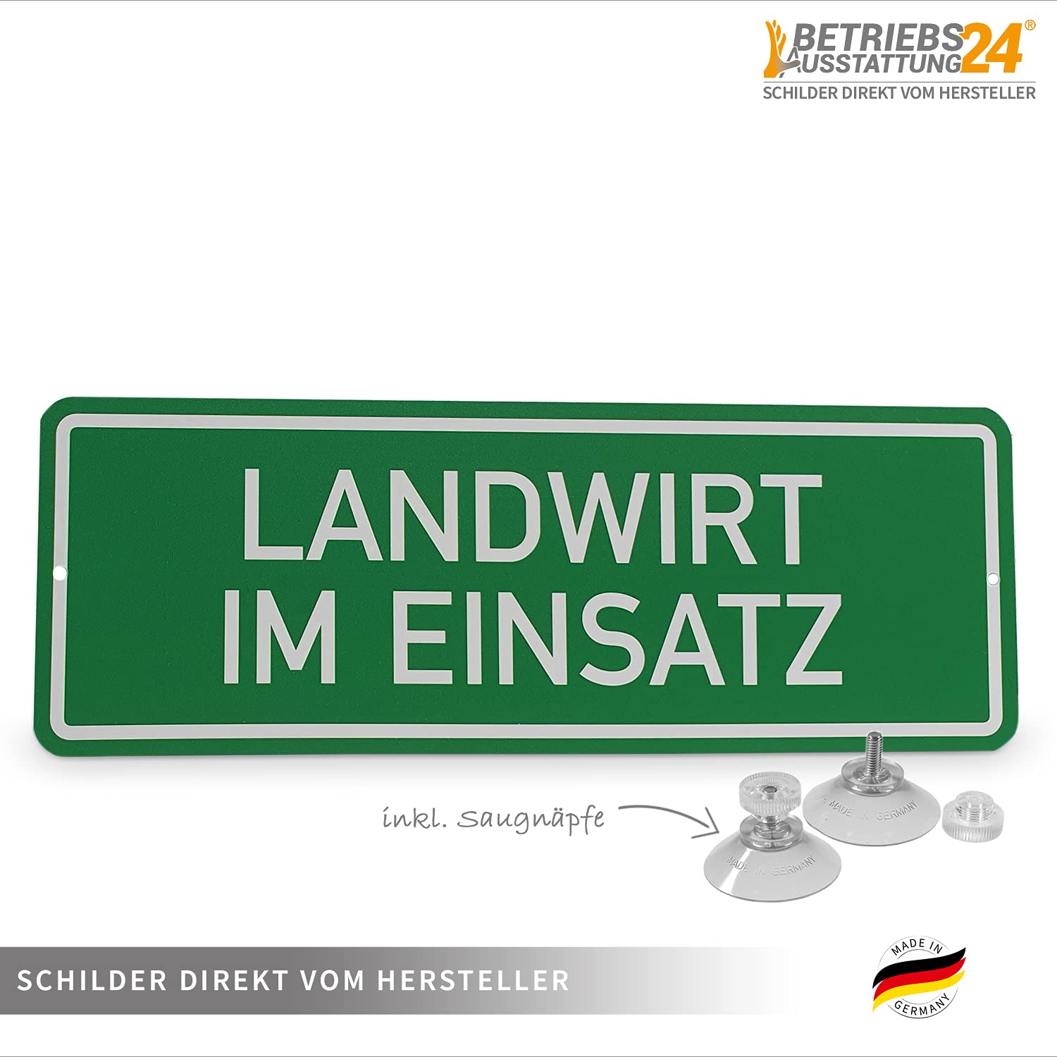 Landwirt Im Einsatz Hinweisschild Betriebsausstattung24 Hinweisschild „Baustellenfahrzeug" - Magnetfolie Größe (BxH Hinweisschild Landwirt Speziell für den Einsatz an Kraftfahrzeugen geeignet - UV-Beständig & wetterfest - Geeignet für den Innen- & Außenbereiche - Erhältlich in verschiedenen Varianten Hochwertiges Hinweisschild zur Angabe einer potenziellen Verkehrsbehinderung | Auffällige Farben sorgen für eine gute Wahrnehmung | Schnell & leicht zu fixieren | Trotz guter Haftkraft lässt sich das Schild rückstandsfrei entfernen Speziell für den Einsatz an Kraftfahrzeugen geeignet | UV-Beständig & wetterfest | Geeignet für den Innen- & Außenbereiche | Temperaturbeständig | Erhältlich in verschiedenen Varianten Beschreibung / Schild "Landwirt im Einsatz" mit Saugnapf Abmessung 150 x 60 x 0,7mm Autoschild Landwirtin im Einsatz - www Traktoren, Mähdreschern, Landwirtschaftliche Maschinen, u., v., m. Made in Germany und direkt von Hersteller
