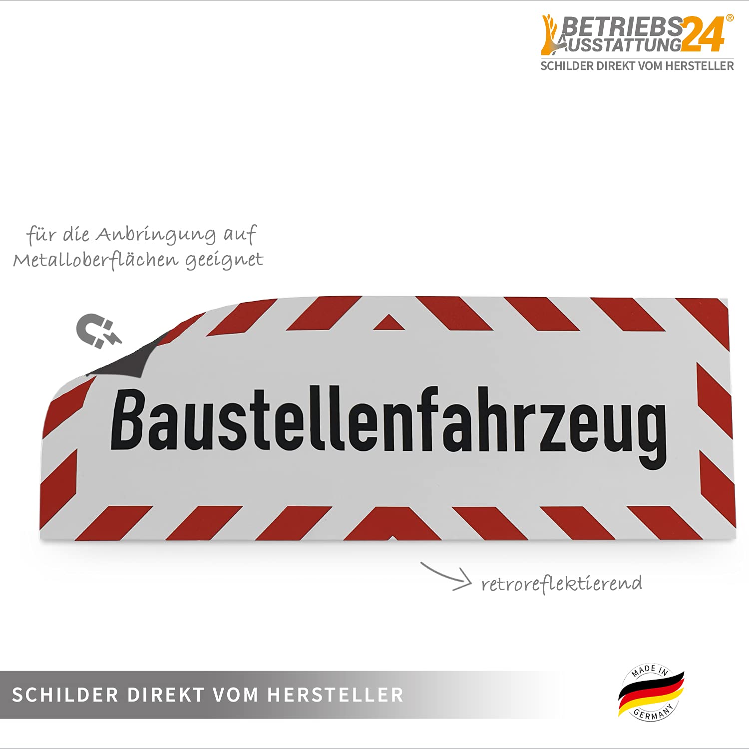Betriebsausstattung24 Hinweisschild „Baustellenfahrzeug" - Magnetfolie Größe (BxH