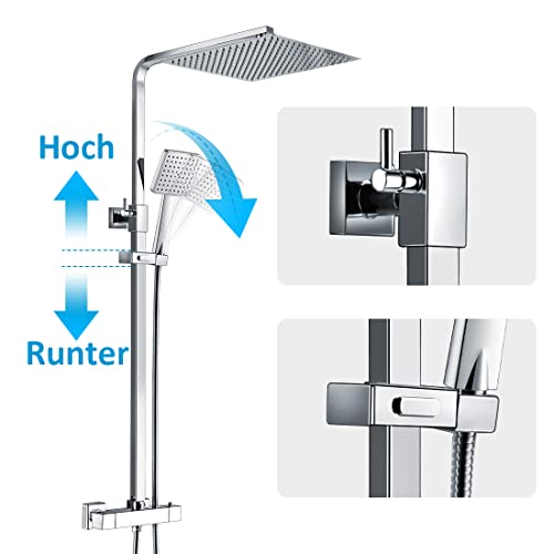 Handbrause mit 3 Funktionen: Regen, Power-Massage, Regen und Massage. Müheloses Einstellen des Wasserdrucks, hochfestes Wasser kann Sie entspannen, garantiert optimale Leistung auch bei Installationen mit niedrigem Wasserdruck Regendusche Ohne Armatur KOJOX Duschset - Hochdruck Duschkopfsystem Aus Poliertem Chrom - 3 Regendusche Mit Armatur Verbrühungen verhindern: Die Druckausgleichsventilkartusche überwacht den Wasserdruckausgleich, um Sie vor Verbrühungen durch plötzliche Druckänderungen von heißem oder kaltem Wasser zu schützen Poliertes Chrom: Schlank, leicht zu reinigen und hat den Salzsprühtest bestanden. Joho Regendusche Duschsystem | Preisvergleich bei Jeder Grund macht Sie mit diesem Duschsystem unzufrieden, lassen Sie es uns wissen und wir werden es richtig machen. Die für die Wandmontage vorgesehene Aufputzarmatur verfügt über einen unteren Brauseabgang 1/2" und eine variabel einstellbare Mengenbegrenzung. Inspiriert von rautenförmigen Designakzenten fügt sich die Einhand-Brausebatterie harmonisch in viele Badstile ein. Es kann leicht der Oberflächenkorrosion durch feuchte Umgebung im Duschraum ausgesetzt werden Hochdruck Duschsystem mit 25,4 cm rundem Regenduschkopf und Handbrause zur Wandmontage, Duscharmatur Set, Kombi Set mit 2 in 1 Handbrause für Badezimmer, Chrom