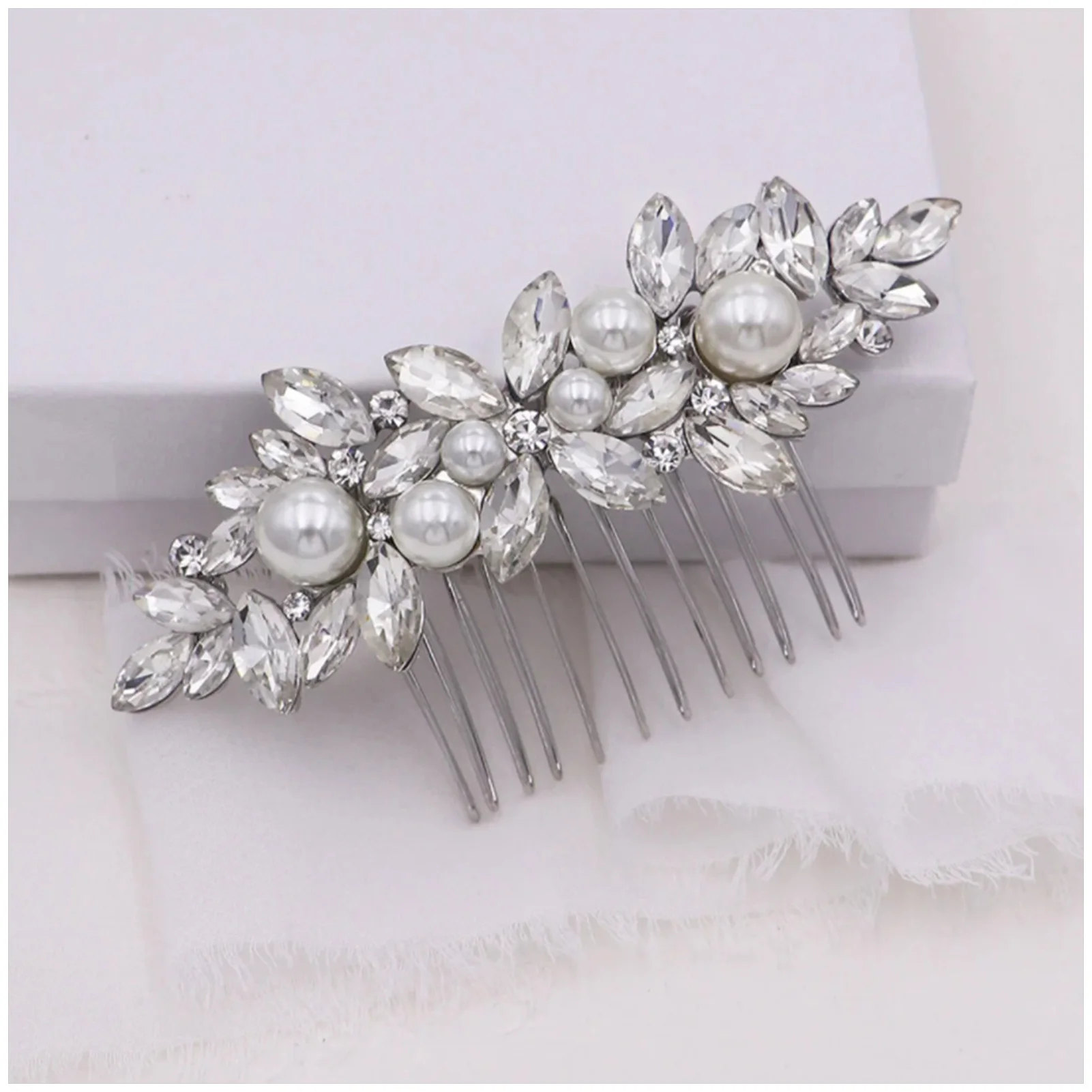 FRCOLOR Haarschmuck Hochzeit Braut, Perlen Haarspange Mit Strass Blättern Und Blumen, Ideal Für Hochzeit, Verlobung, Party