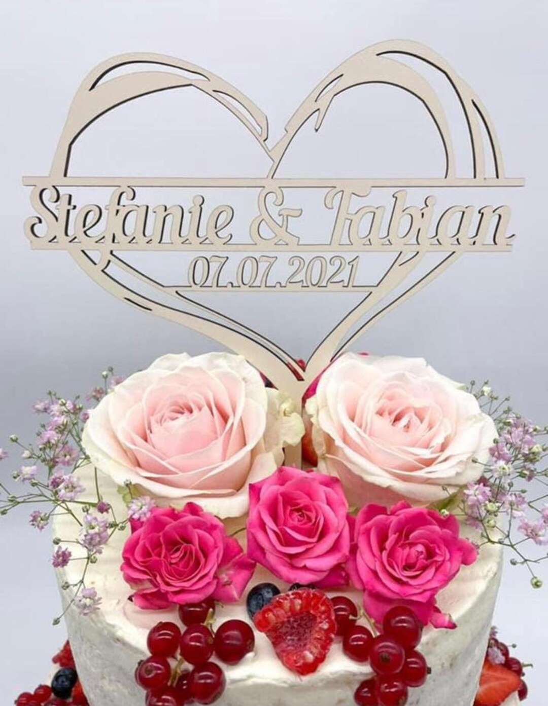 Holz Cake Topper Hochzeit Mit Herz - Individuelle Tortendeko Aus