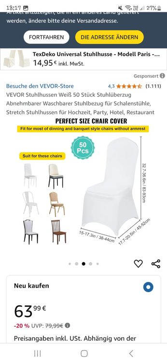 Preise:1,50€/Sitzkissen pro angefangenen TagWochenendtarif:2,50€/Sitzkissen - Freitag 10 Uhr - Sonntag 13 UhrWie auf den Bildern ersichtlich vermieten wir ebenfalls Stühle, Tische & Dekoration, wofür wir gern ein Komplettangebot für Ihr Event erstellen. Refttenw Dekoobjekt 6St Stuhlschleifen Hochzeit Satin Stuhlschärpen 6 Stuhlschleifen Hochzeit Satin Stuhlschaerpen 6 St 17 X 275 Cm S0te40dh Sie passen auf die meisten Klappstühle, Hochzeitsbankettstühle auf dem Markt., Einfach zu bedienen. Auf Lager: VEVOR Stretch-Stuhlschärpen mit Schleifen aus Spandex, Stuhlhussen & Stretch-Stuhlschärpen, Elastische Stuhlbänder, Passende Stuhldekoration für Hochzeiten, Partys und Feste (50 Stück, Gold) zum besten Preis, YTZSDJS50PCS79W25V0. Eine schnelle Lieferung überall in Deutschland möglich Beide Seiten sind glänzende Pailletten, die ihnen ein charmantes Aussehen in jeder Ansicht verleihen. Sie können sie einfach zurückgeben, solange Sie sie nicht mögen. Der Stretchbereich der Schärpen liegt zwischen 36,8–48,3 cm. Normale Größe 14,5 x 34,0 cm, geeignet für die Breite der Stühle 30,0 cm - 50,0 cm. Lieferumfang: 50 Stuhlschärpen. Diese Stuhlschärpen sind weit verbreitet in Hochzeiten, Feiertagen, Geburtstagsfeiern, Zeremonien, Empfang, Abschlussfeiern, Babypartys Maximaler Radius 150km um Halle (Saale).Preise inkl.19% MwSt. Vermietung nur gegen Hinterlegung einer Kaution. Stuhl Louis Rosa - Wiesent Eventdekoration