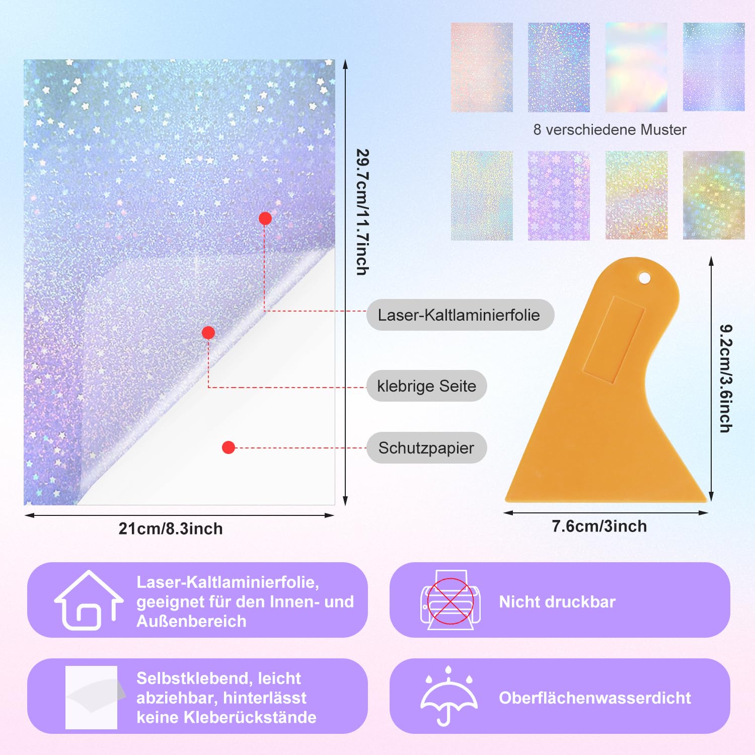 Holografische Folie, 20 Blatt Klares Vinyl Holografische Aufkleber