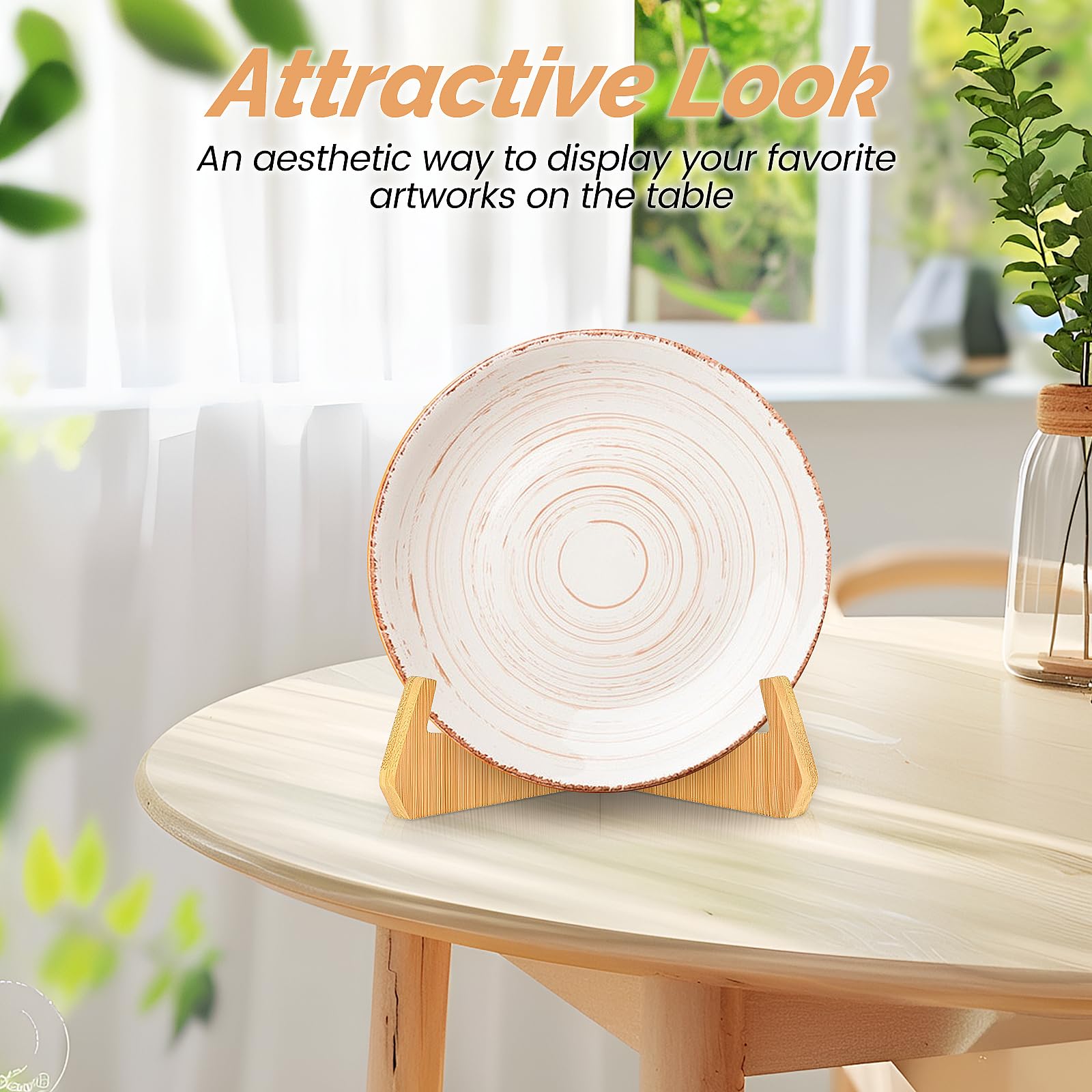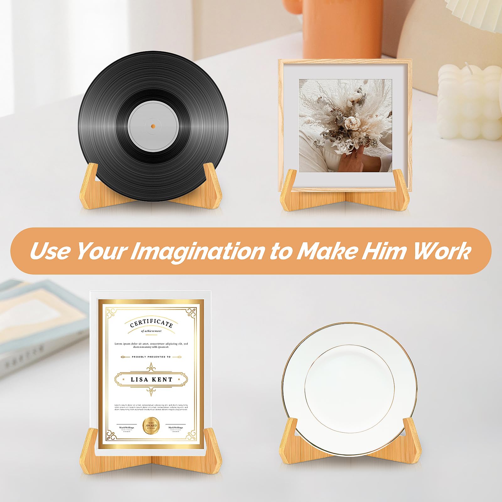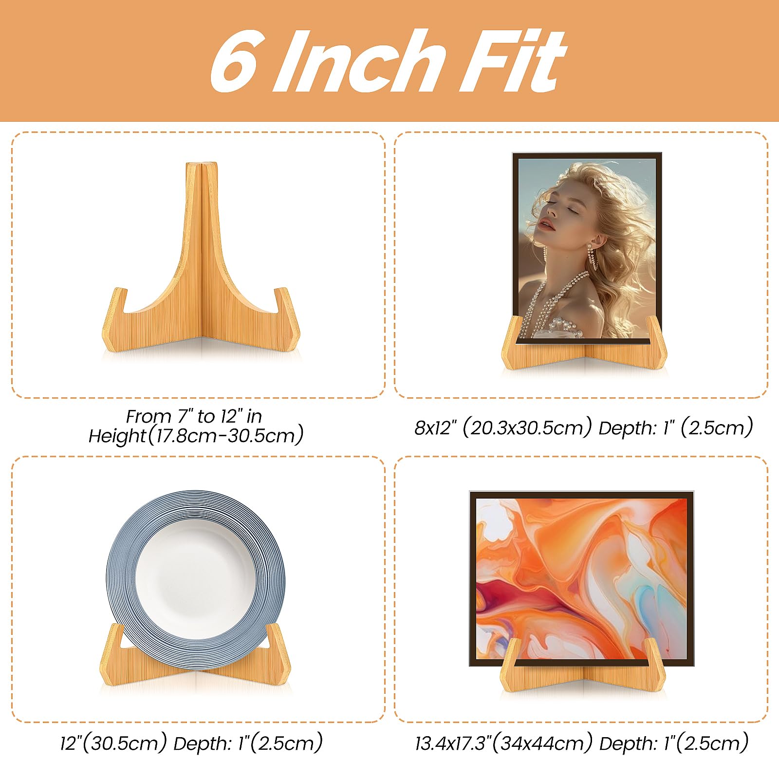 YUDAWN Tellerständer Holz, 6 Zoll Bambus Tellerhalter Plattenständer Teller Ständer Mini Staffelei Bilderrahmen Ständer Dekoteller Halterung Buchständer Fuer Teller Foto Bild