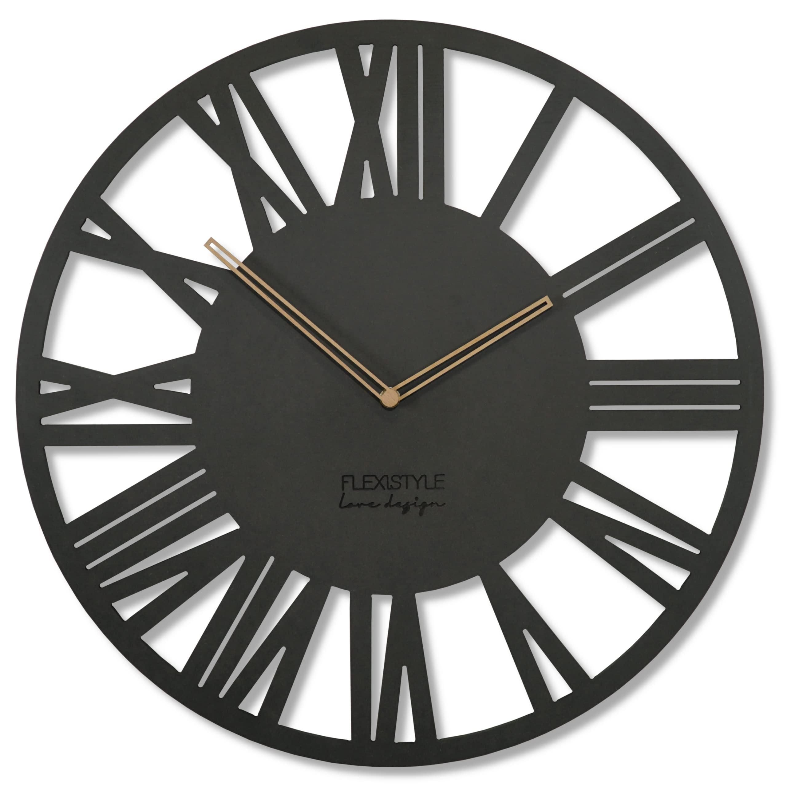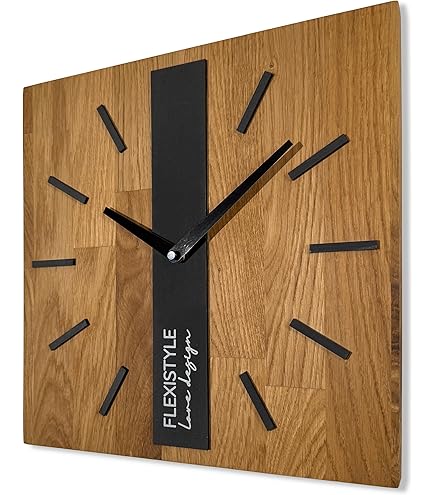 FLEXISTYLE Wanduhr Modern Harmony Holz Eiche Quadratisch Schwarz Ohne Tickgeräusche Badezimmer Wohnzimmer Jugendzimmer (Eiche, 30cm