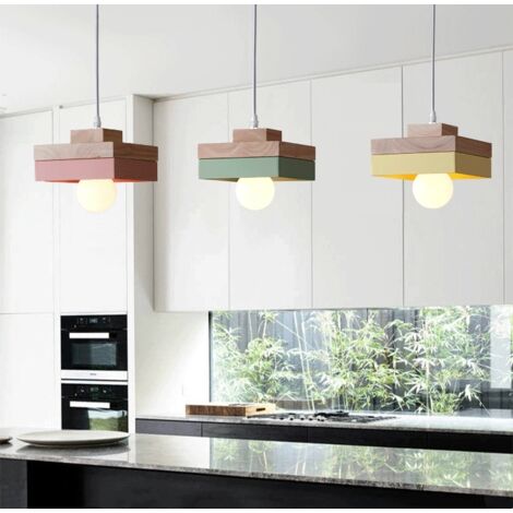 E27 Pendelleuchte Metall Holz Hängeleuchte Höhenverstellbare Deckenleuchte Für Wohnzimmer Schlafzimmer Küche Rosa